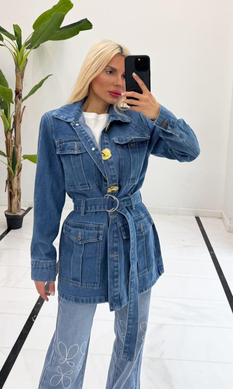 Jean jacket με χρυσά στοιχεία και ζωνάκι