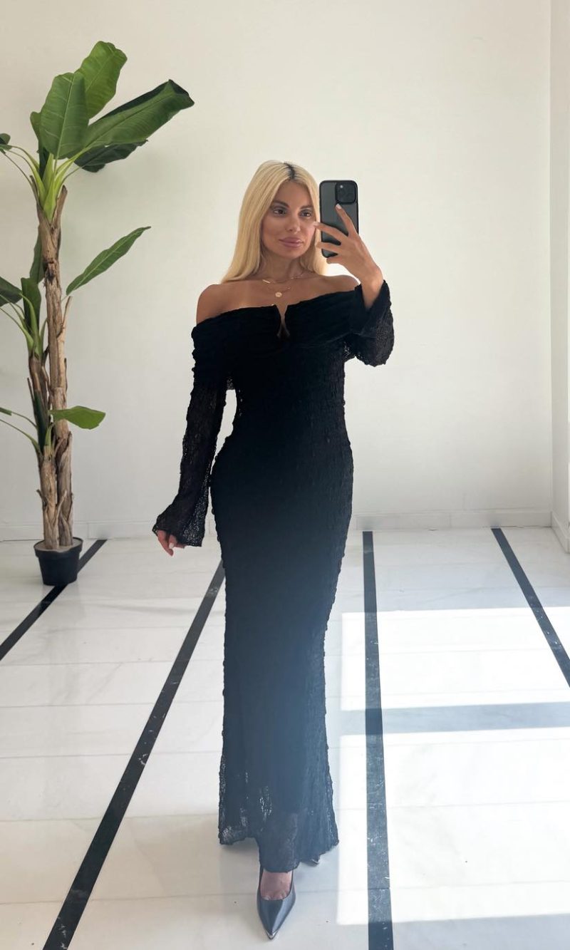 Φόρεμα μαύρο με πλέξη δαντέλα