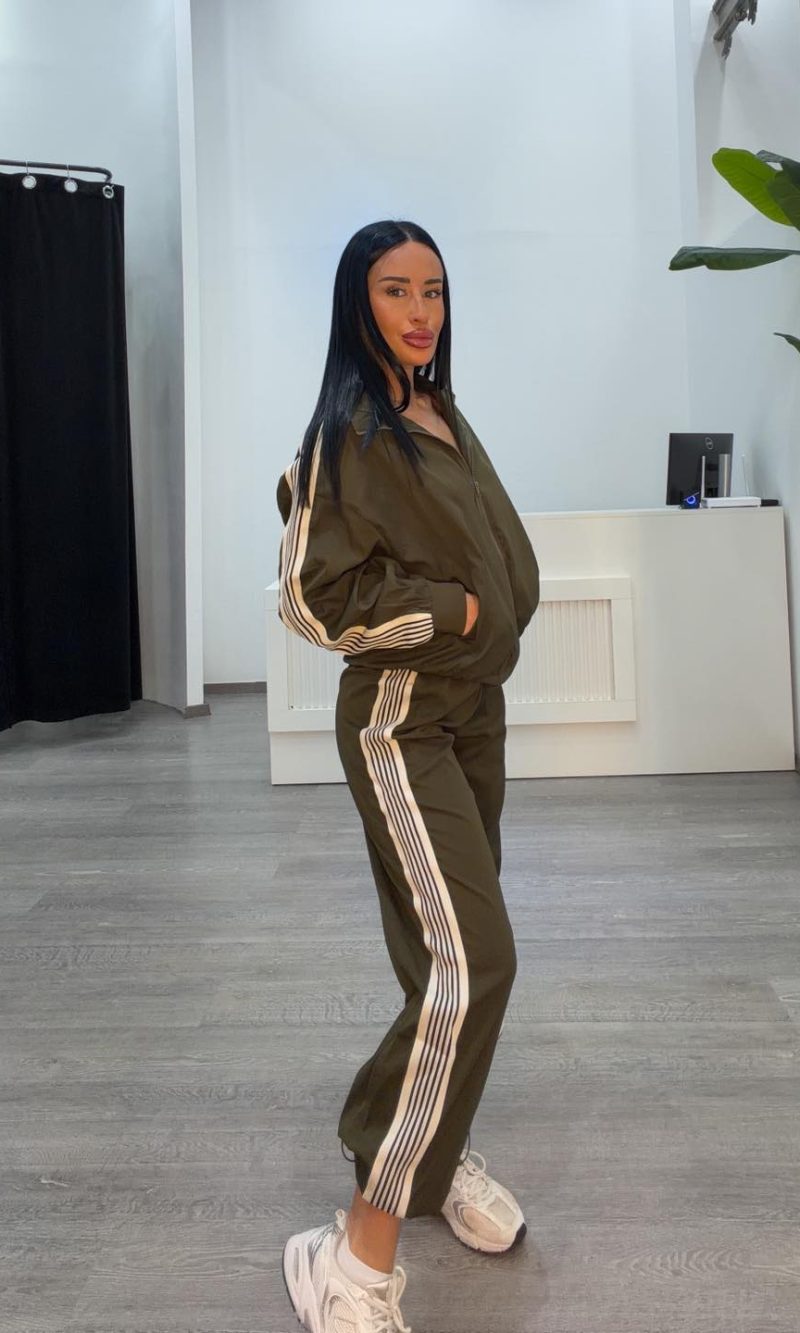 Σετ δυο τεμαχίων φόρμα χακί με κάθετες ρίγες
