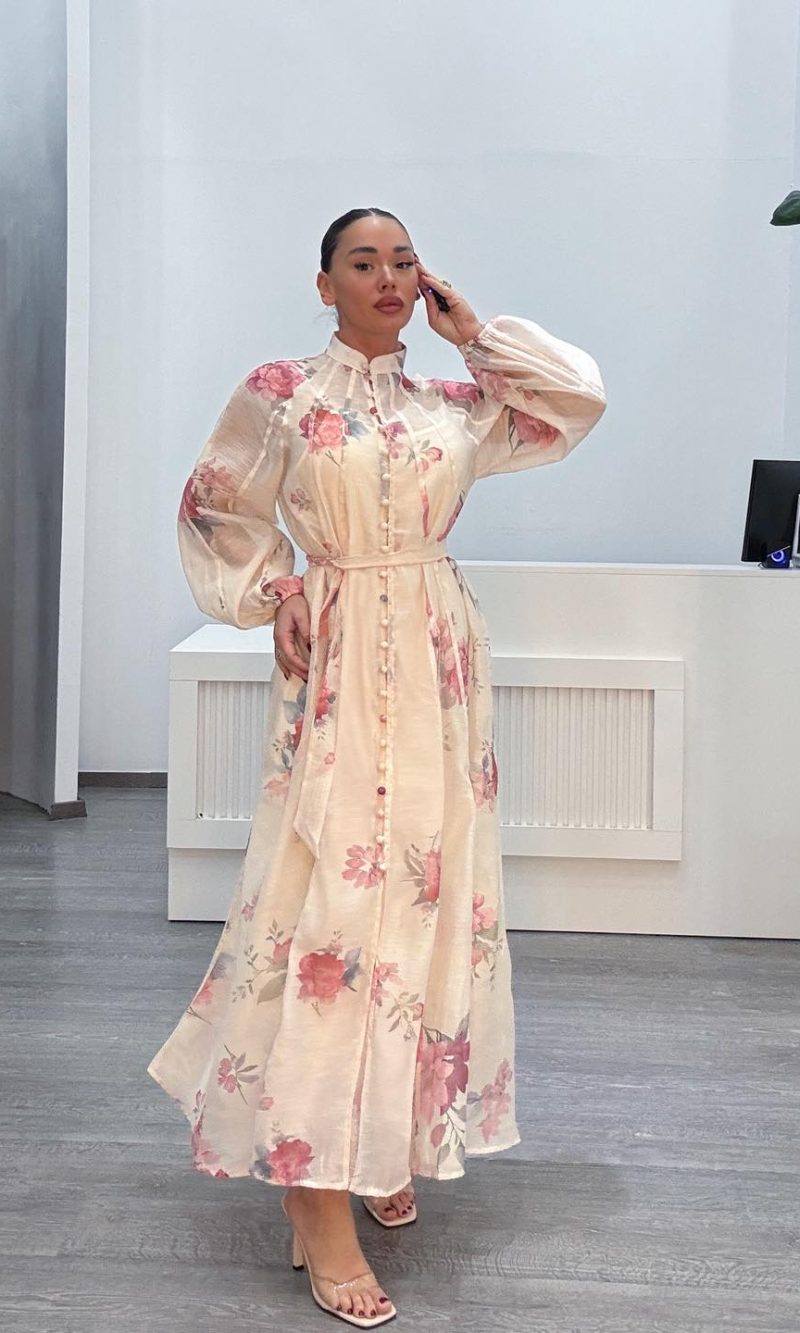 Φόρεμα μακρύ εκρού με πριντ