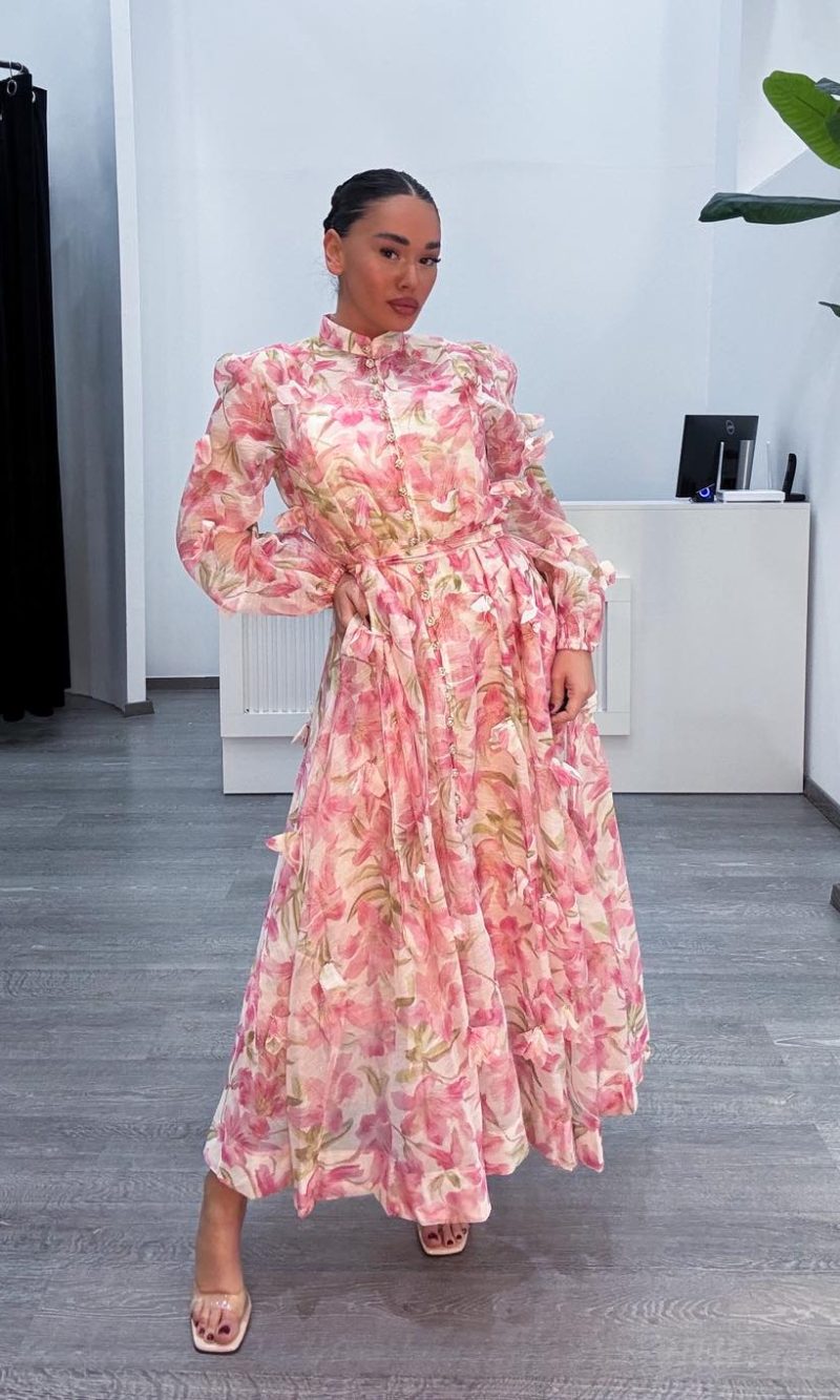 Φόρεμα μακρύ με πριντ φούξια