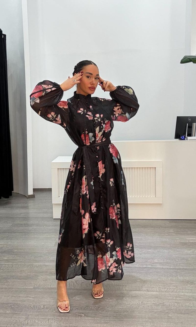 Φόρεμα μακρύ μαύρο με πριντ