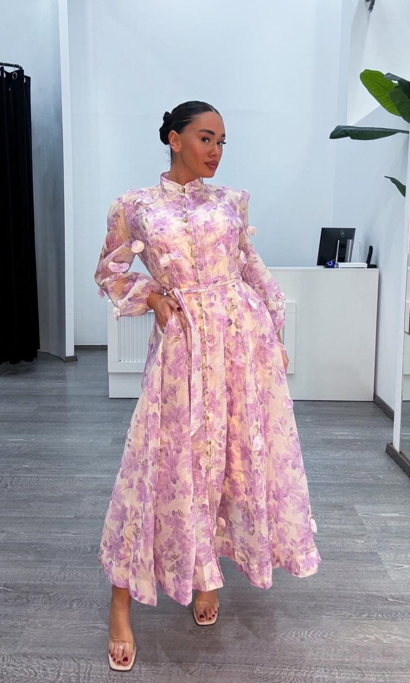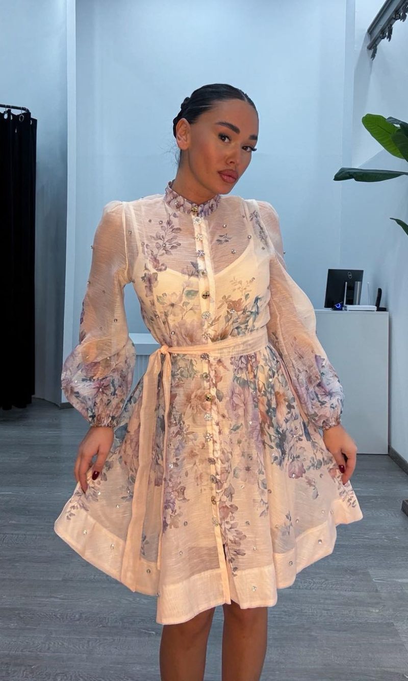 Φόρεμα με κεντημένα λουλούδια ζωνάκι και μεσοφορι
