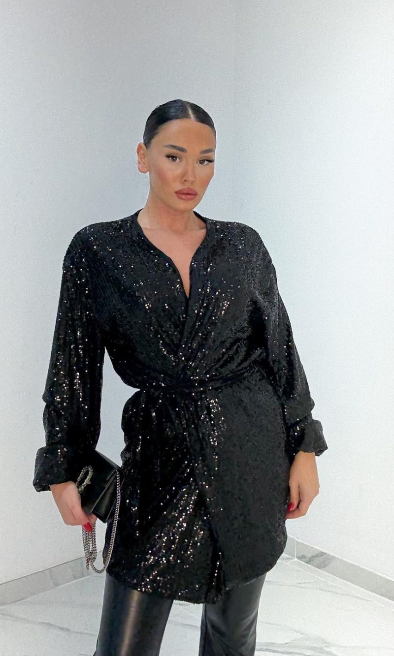 Σακάκι μαύρο με δεσίματα και τρουκ
