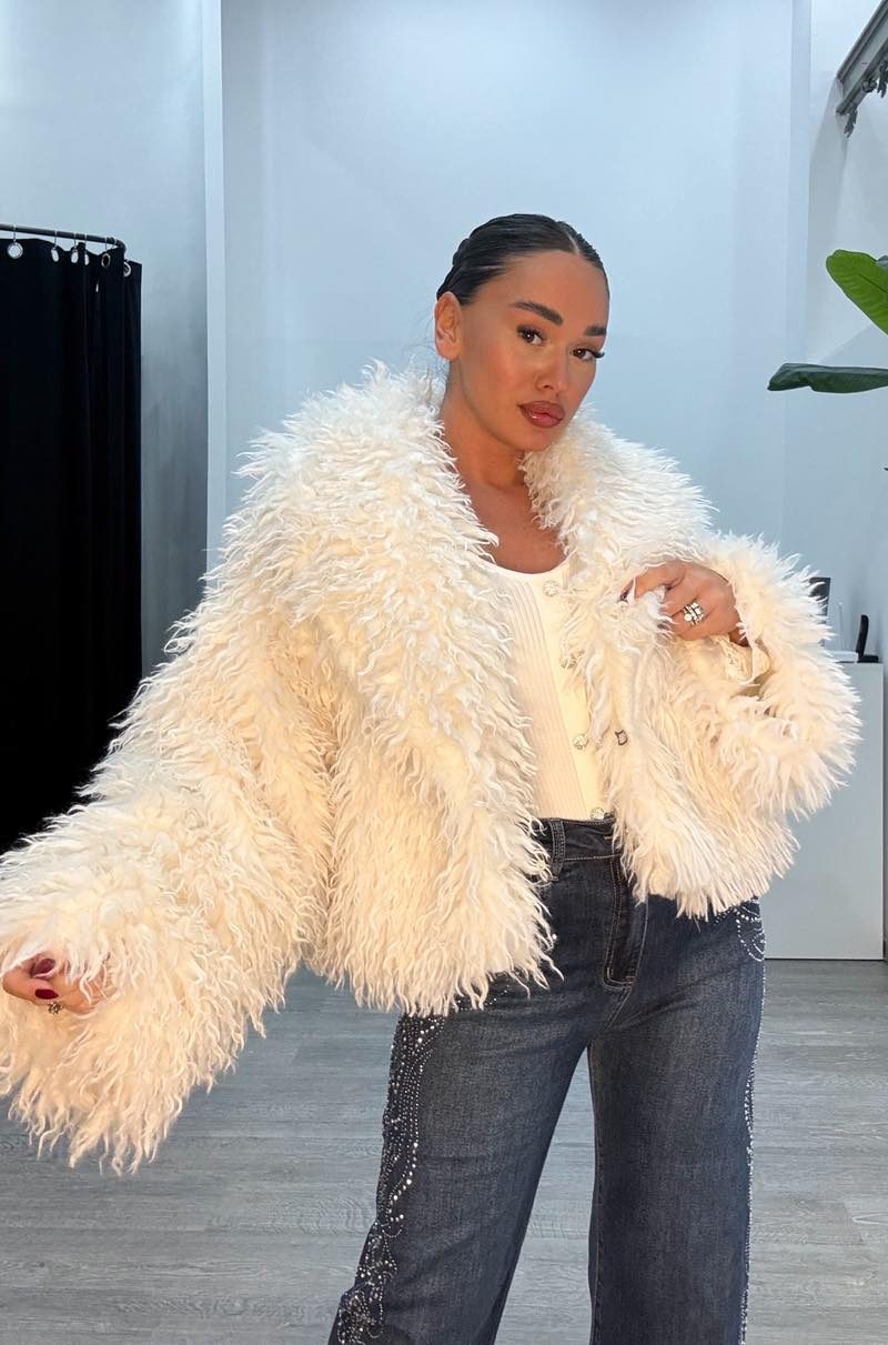 Πανωφόρι καμηλό, οικολογικό δέρμα και γούνα