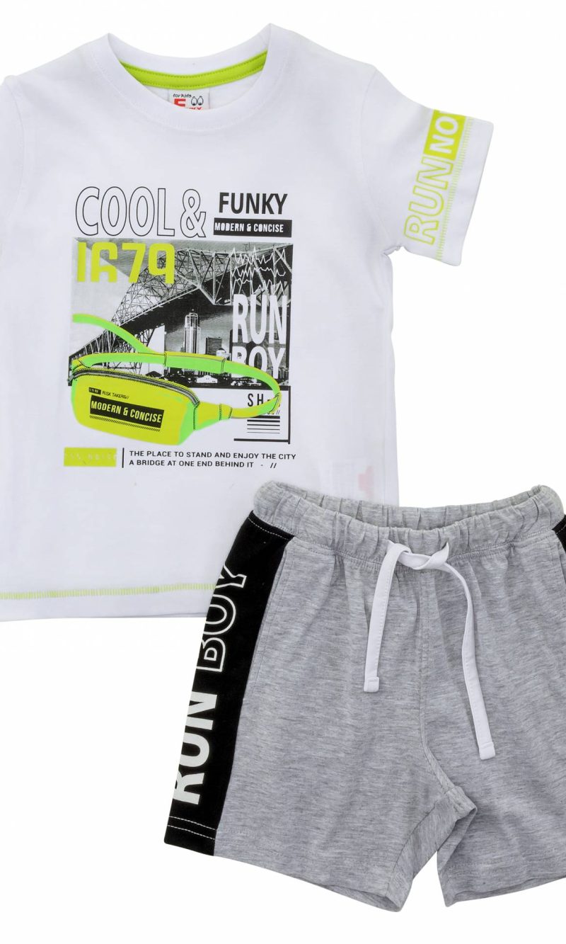 Αγόρι 1-6 Σετ t-shirt & βερμούδα για αγόρι bebe σε χρώμα 1)λευκό 2)γκρι μελανζέ & μαύρο