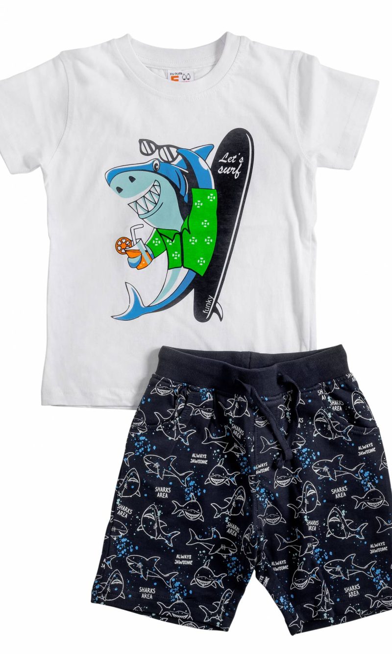 Αγόρι 1-6 Σετ φούτερ αχν. t-shirt & βερμούδα για αγόρι bebe σε χρώμα 1)λευκό 2)μπλέ με ολόσωμο τύπωμα