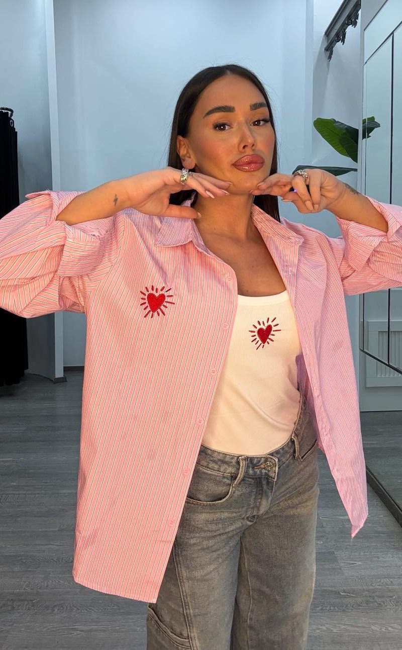 Σετ 2 τεμαχίων ριγέ κόκκινο πουκάμισο με μπλούζα