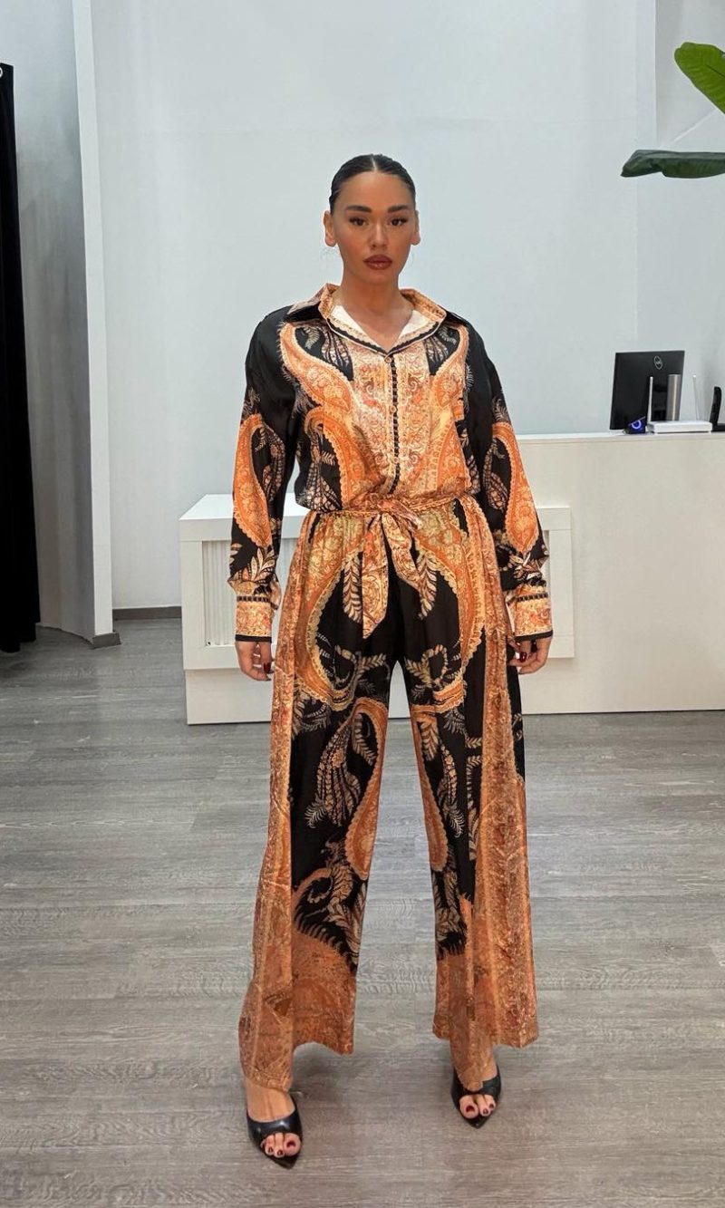 Σατέν σετ με πριντ πουκάμισο και παντελόνι