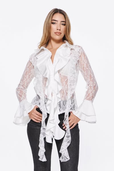 Πουκάμισο λευκό με δαντέλα και στρας