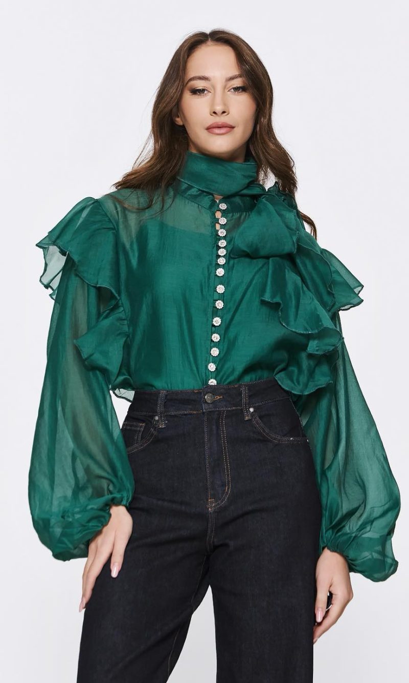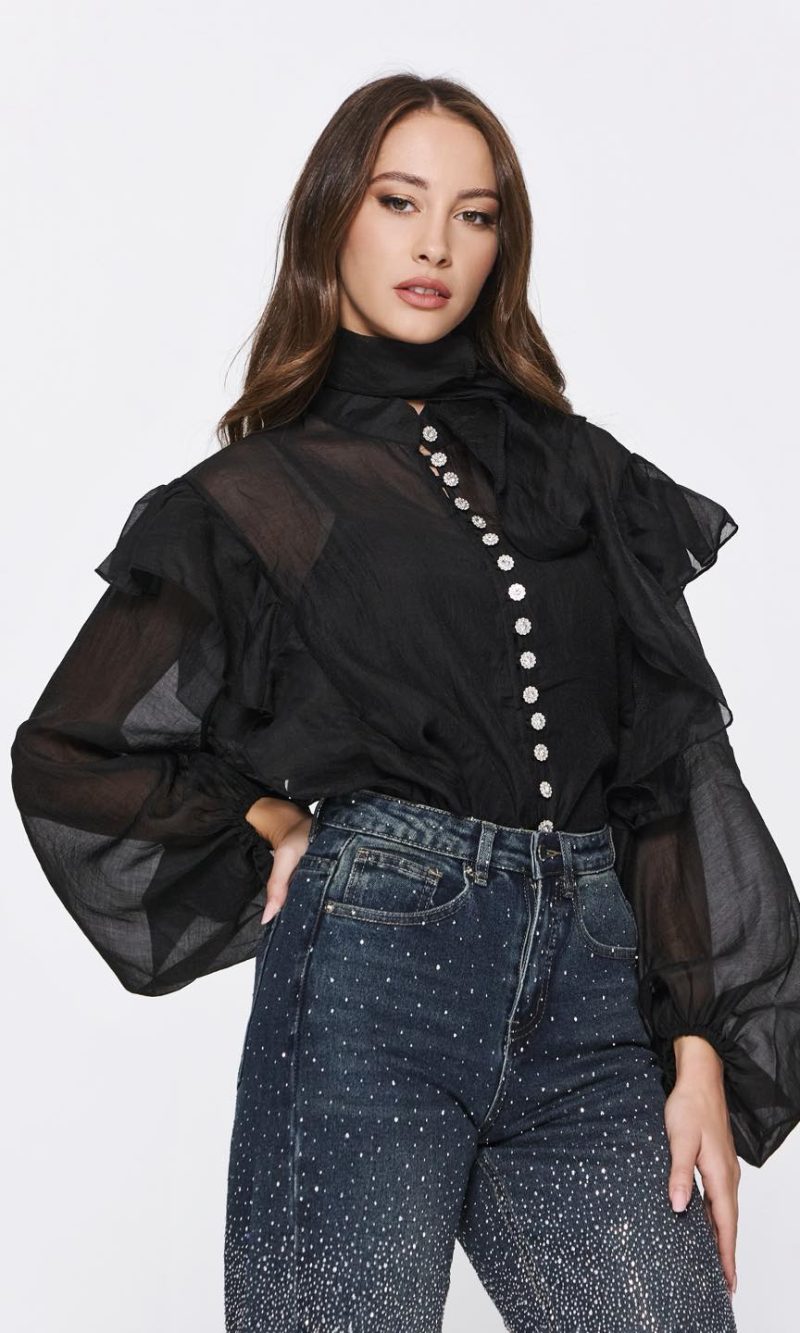 Πουκάμισο μαύρο με δαντέλα και στρας