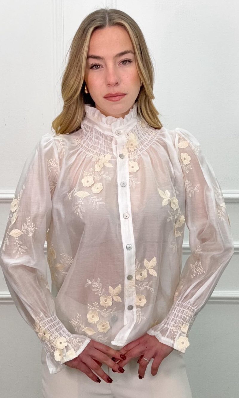 Πουκάμισο λευκό με κεντημένα λουλούδια