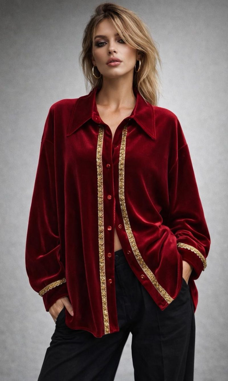 Πουκάμισο μπορντό με χρυσά στοιχεία