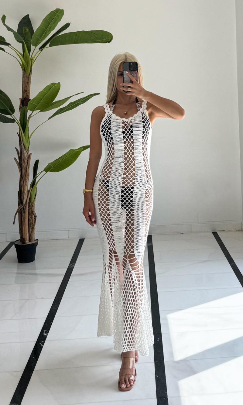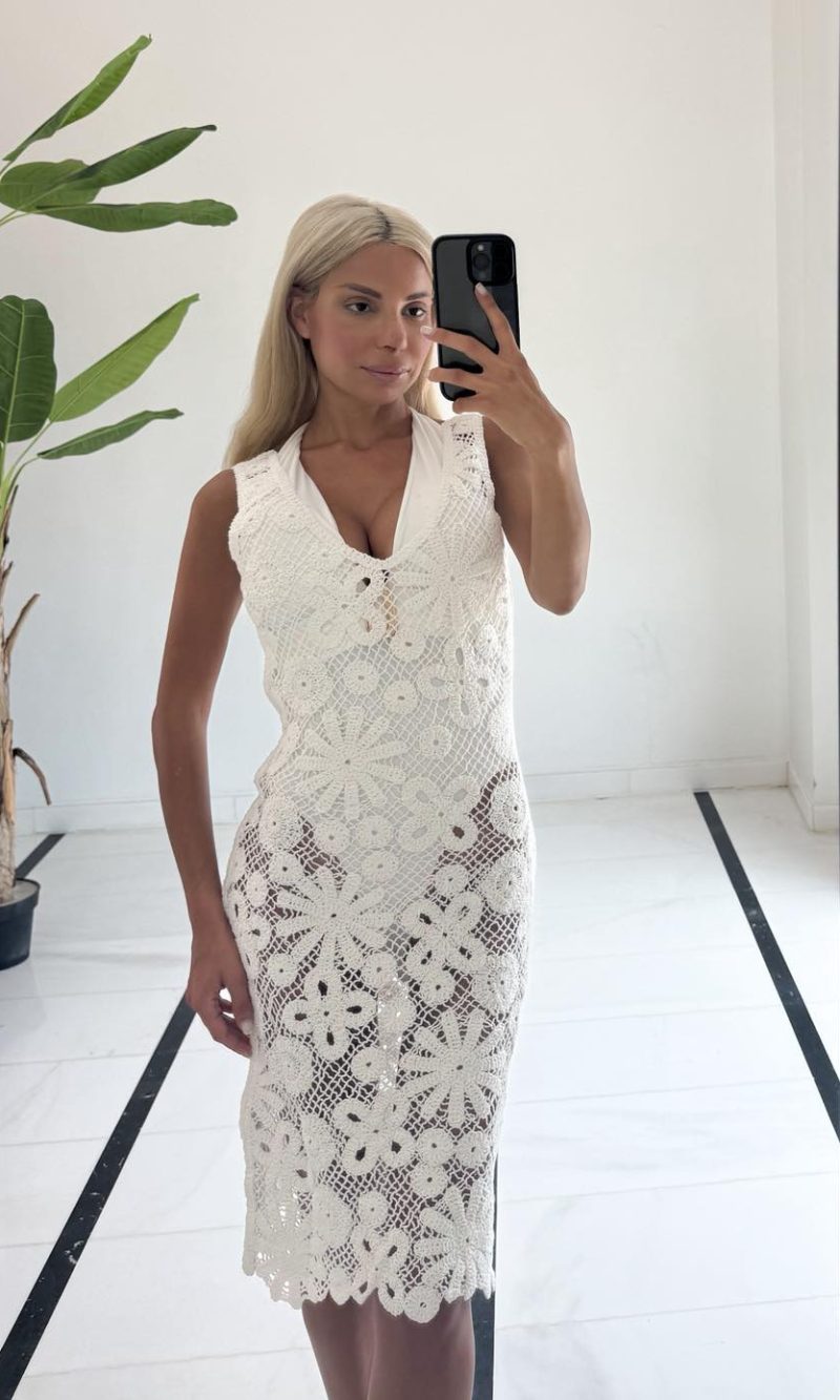 Φόρεμα πλεκτό με πλέξη σε χρώμα λευκό