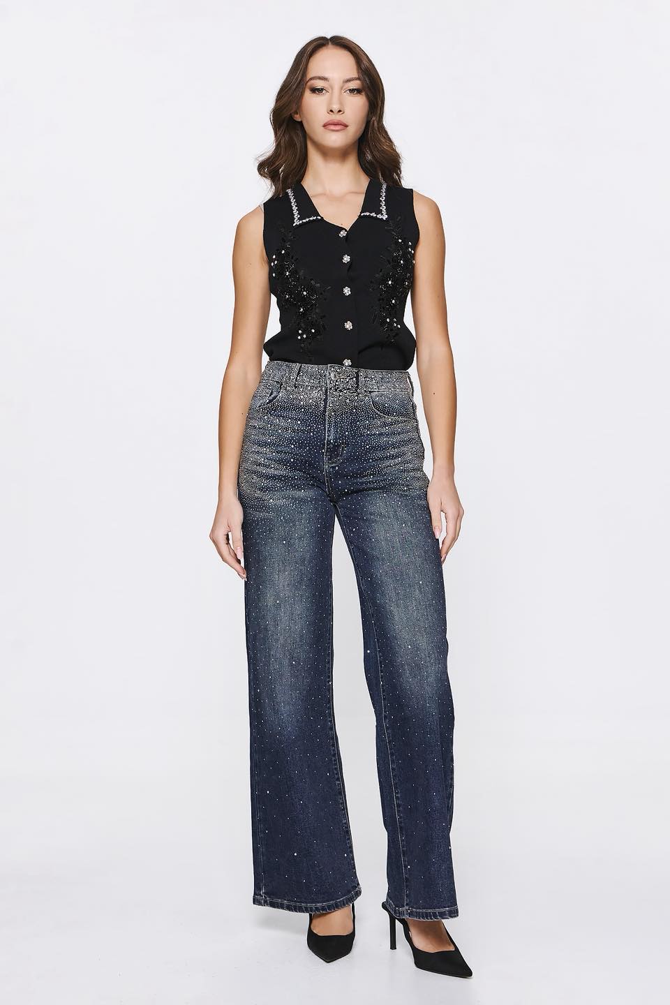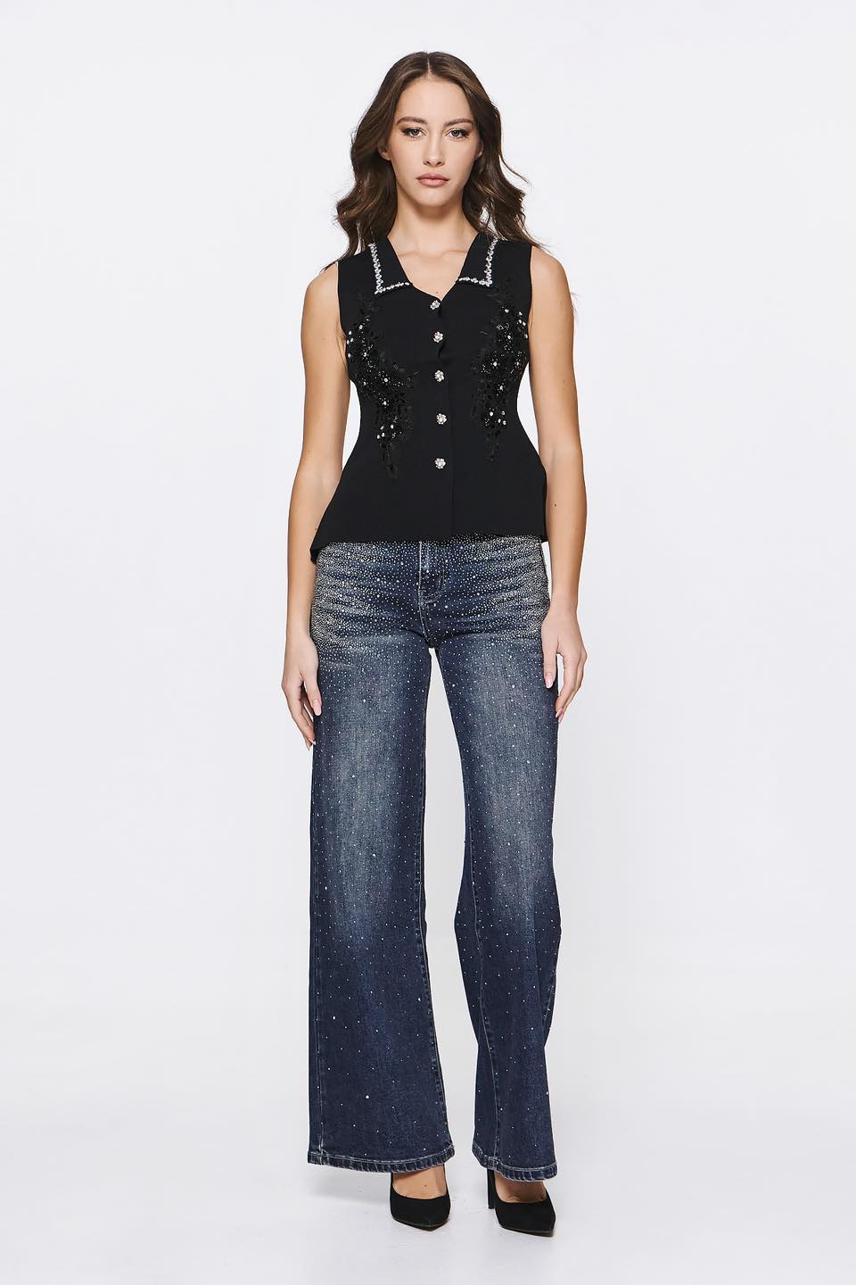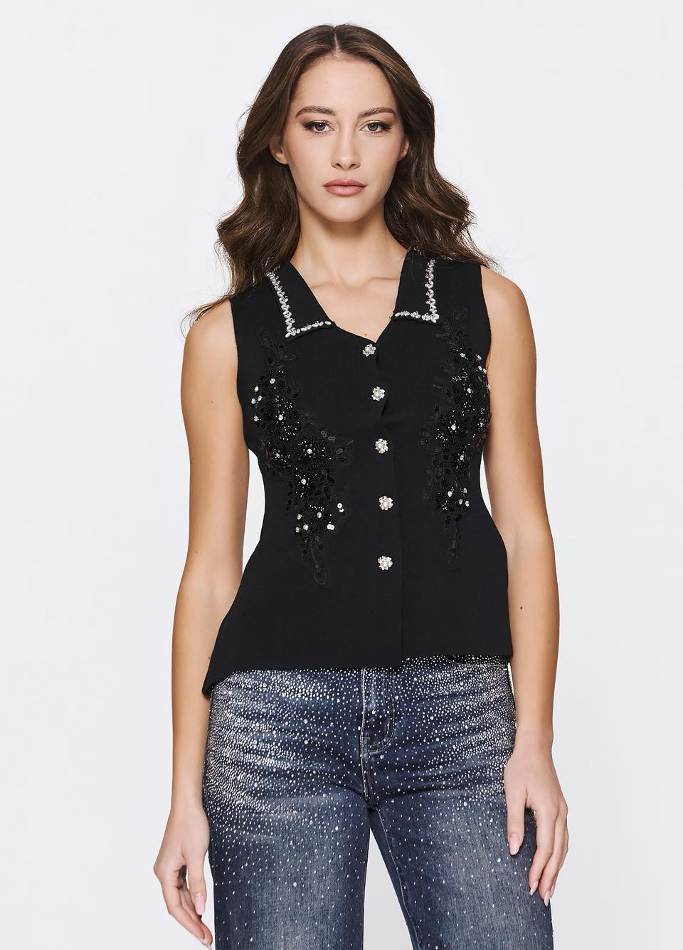Γιλέκο μαύρο με στρας και κουμπιά
