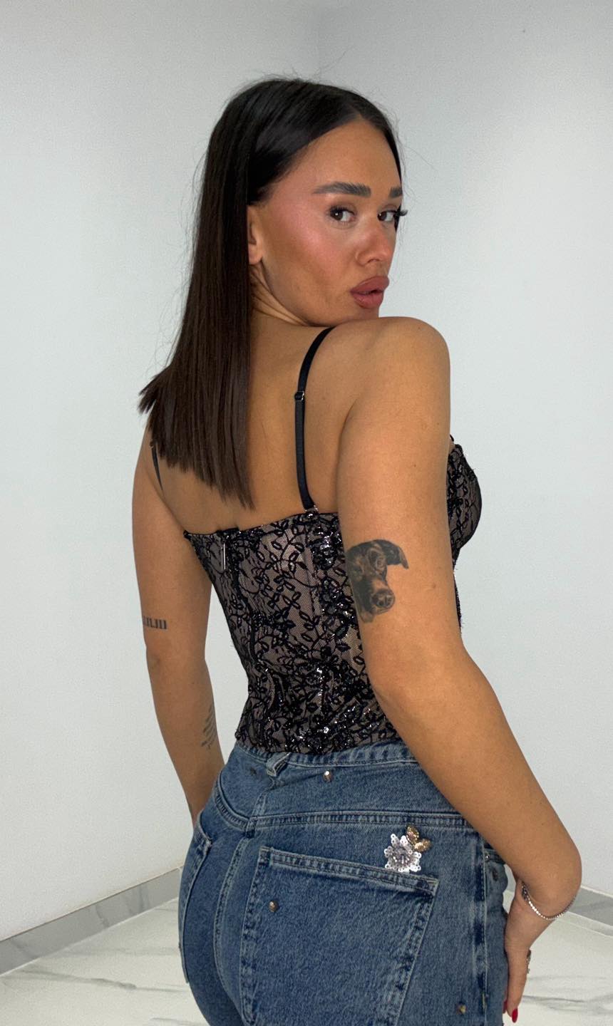 Αμάνικο ριπ πλεκτό μαύρο με στρας και πέρλες