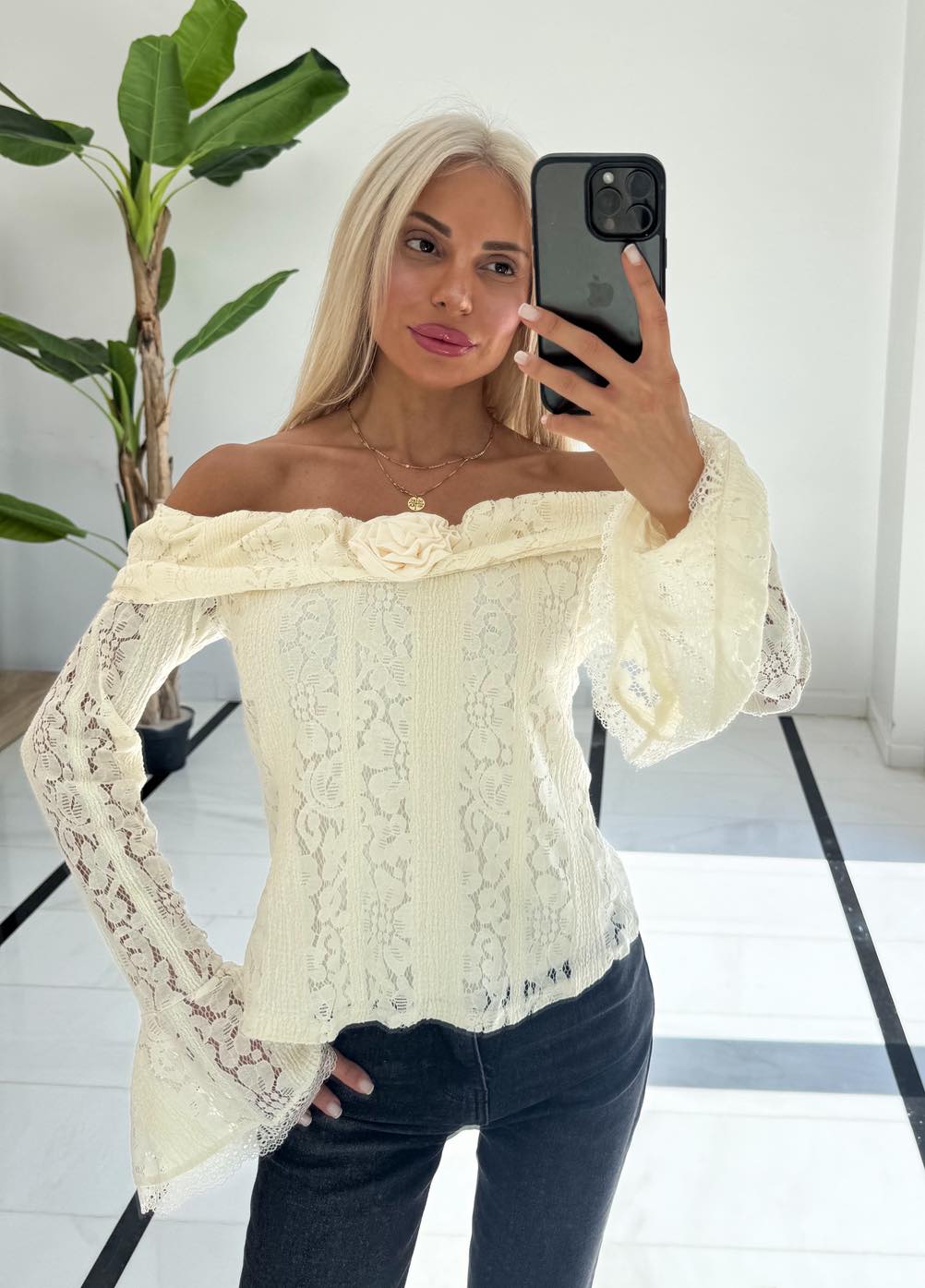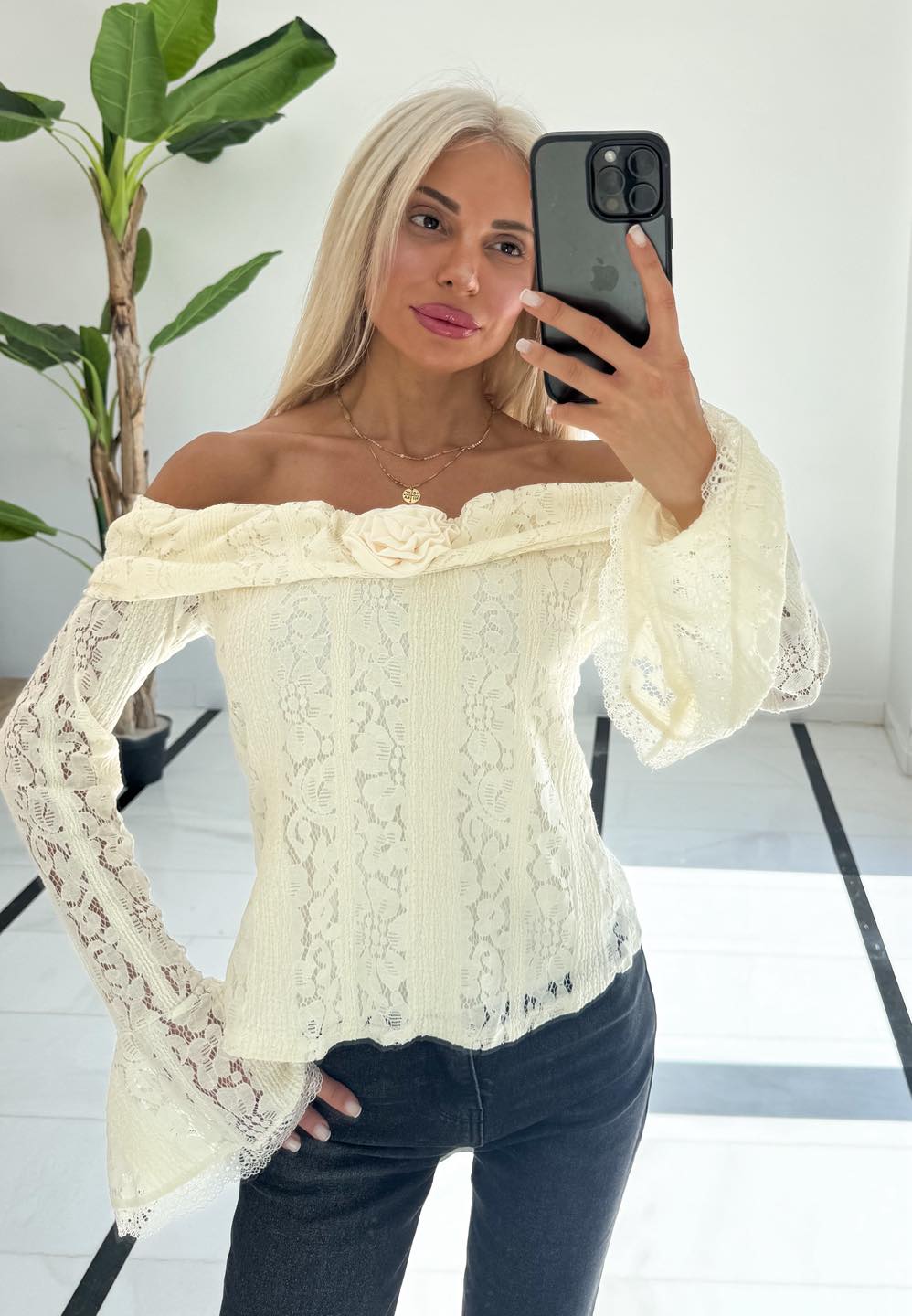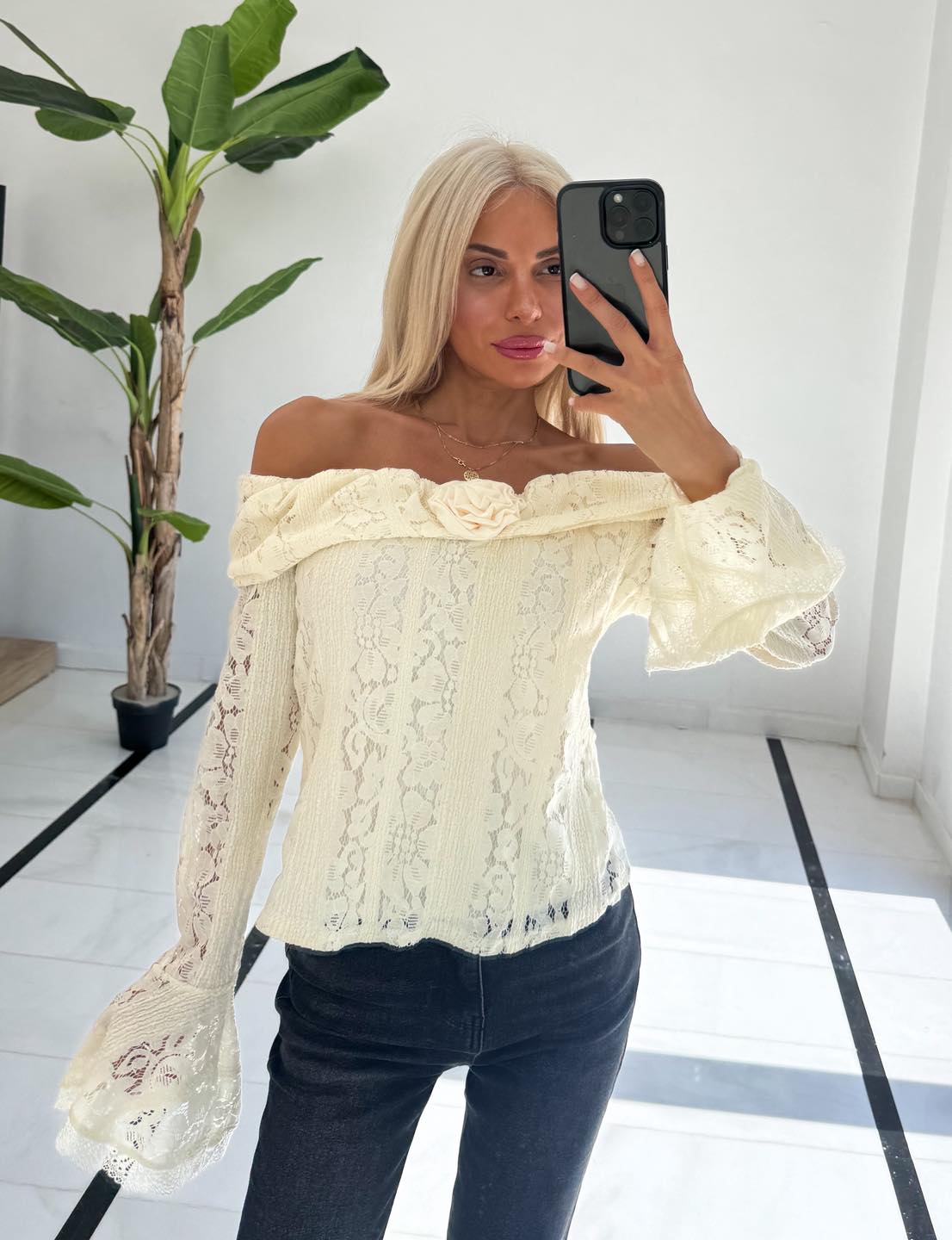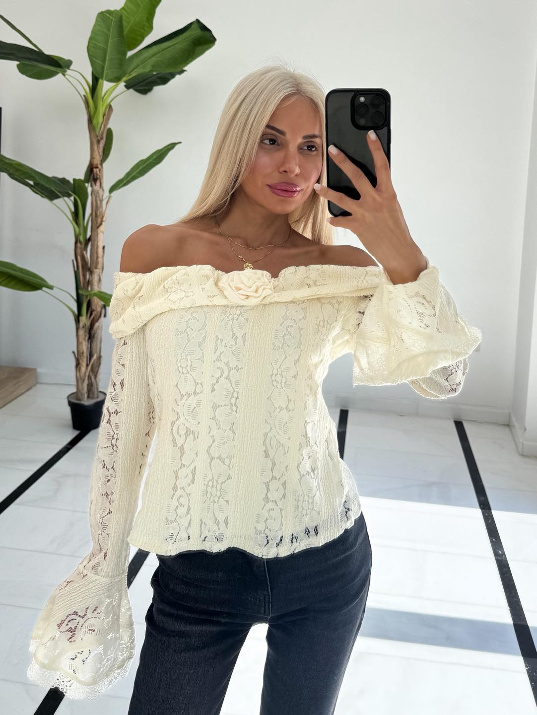 Μπλουζάκι εκρού με δαντέλα