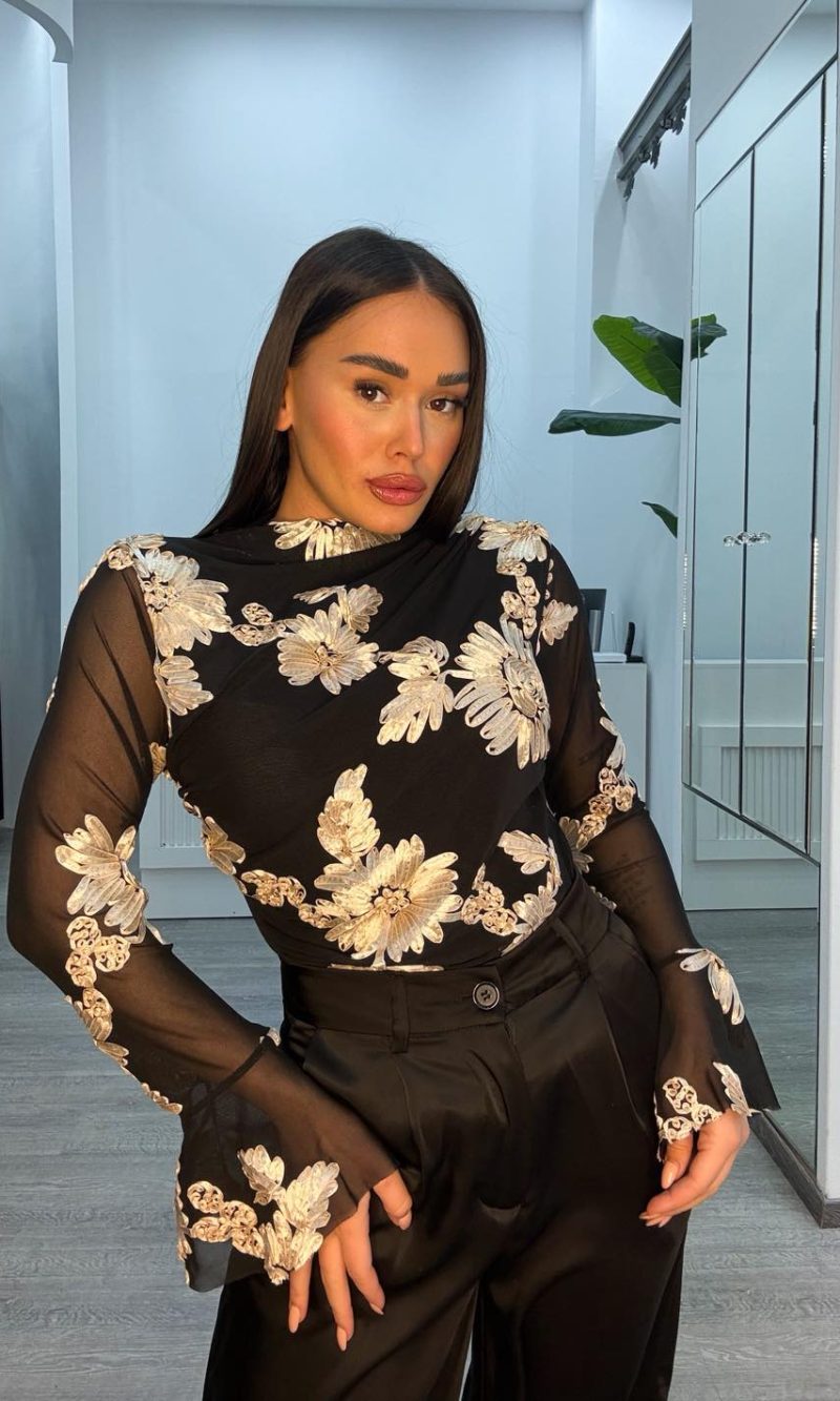 Μπλούζα κορμάκι μαύρη με κεντημένα λουλούδια