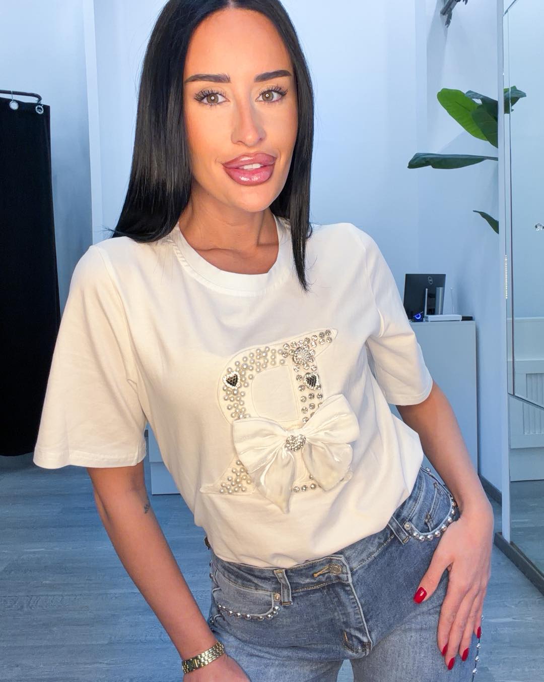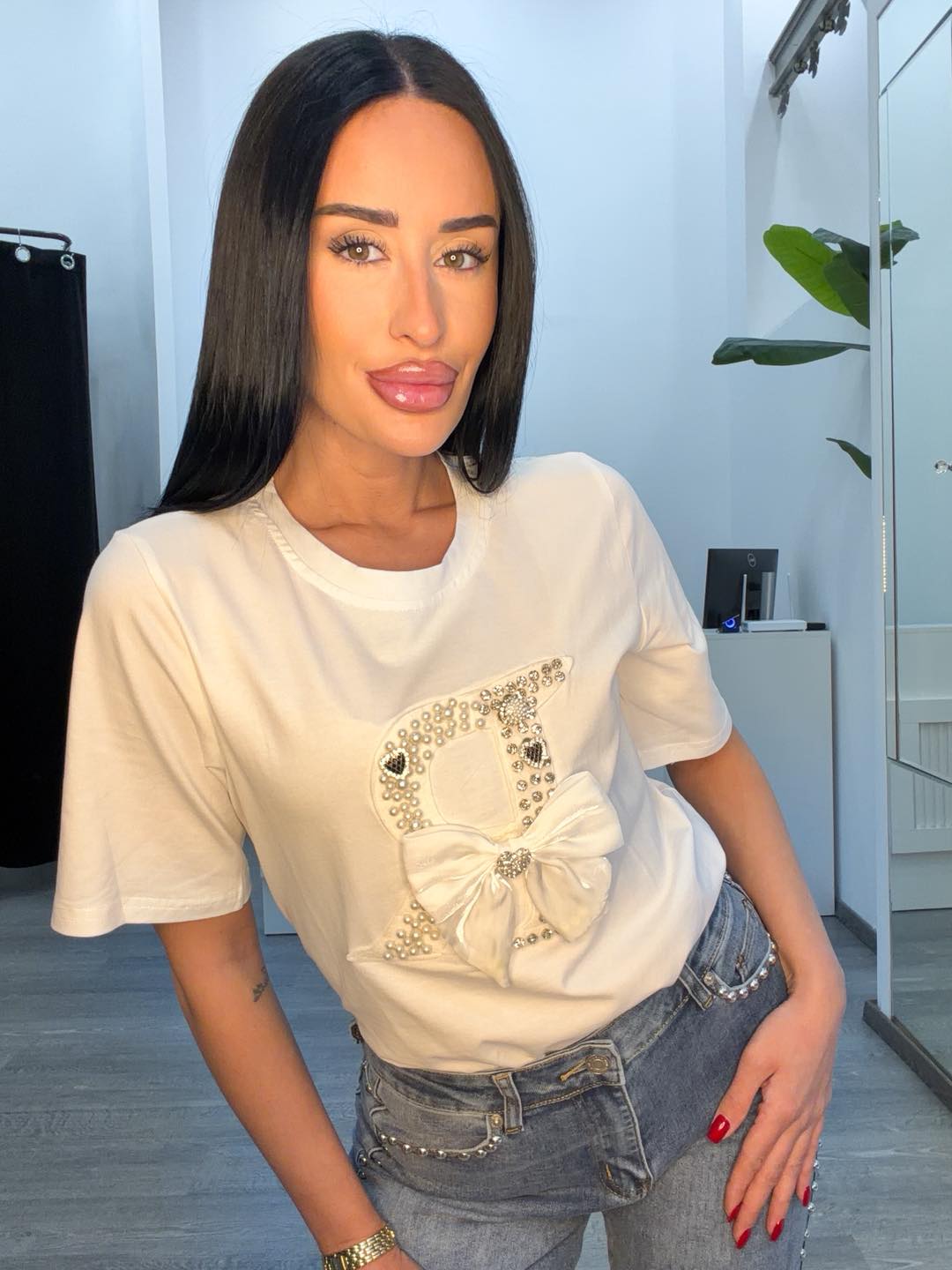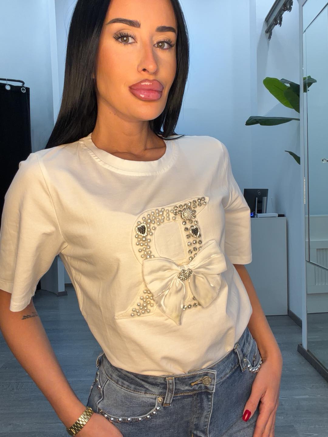 Μπλουζάκι λευκό με πέρλες και φιόγκο
