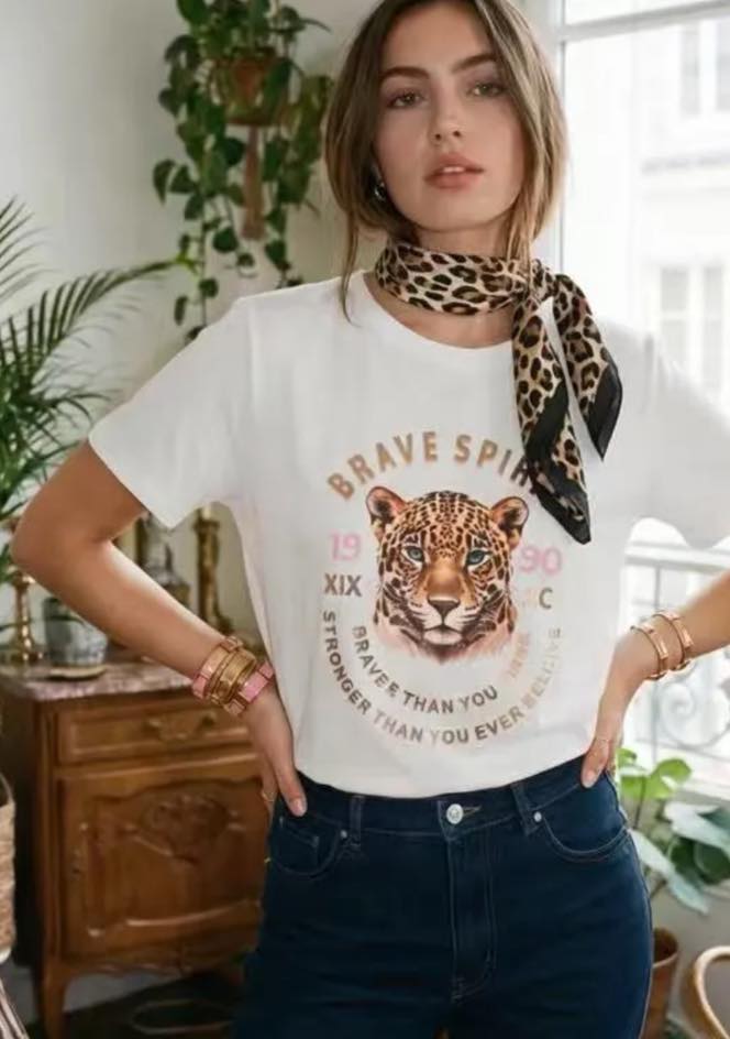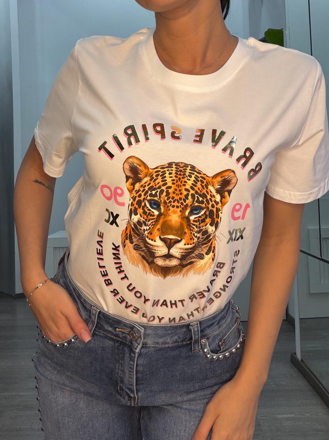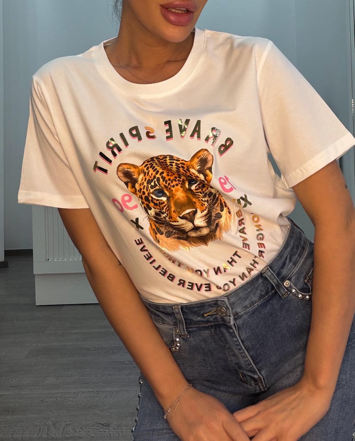 Μπλουζάκι λευκό με τύπωμα τίγρης