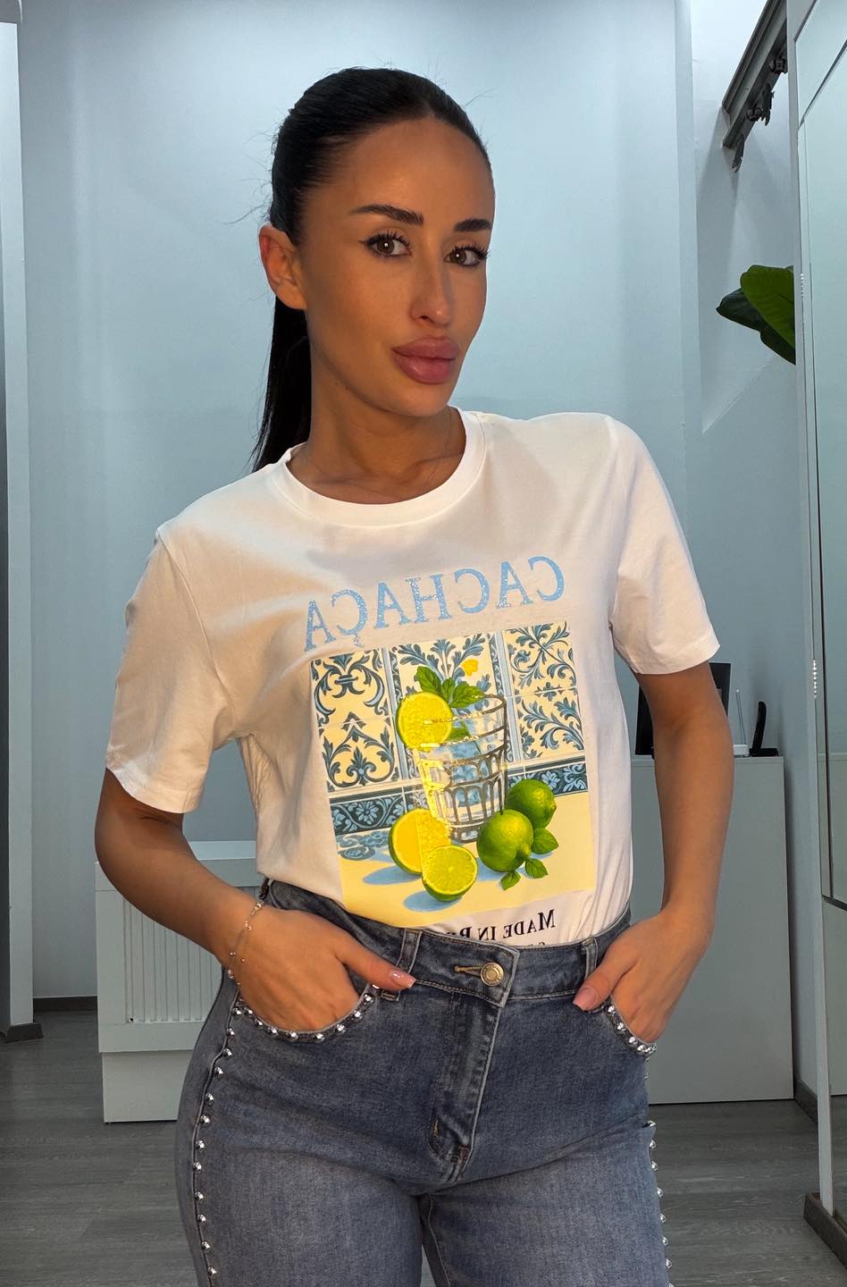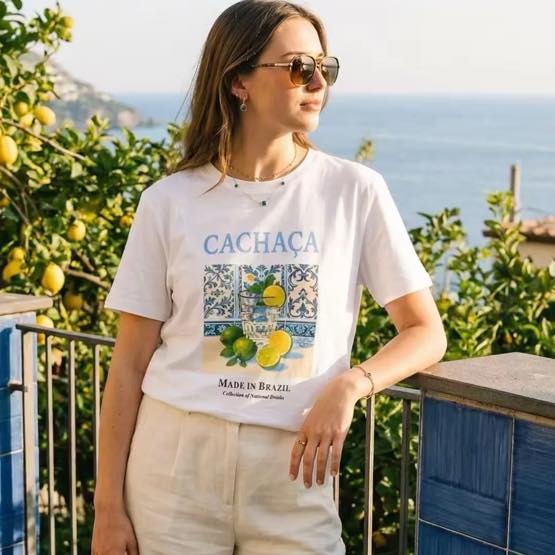 Μπλουζάκι λευκό με τύπωμα CACHACA