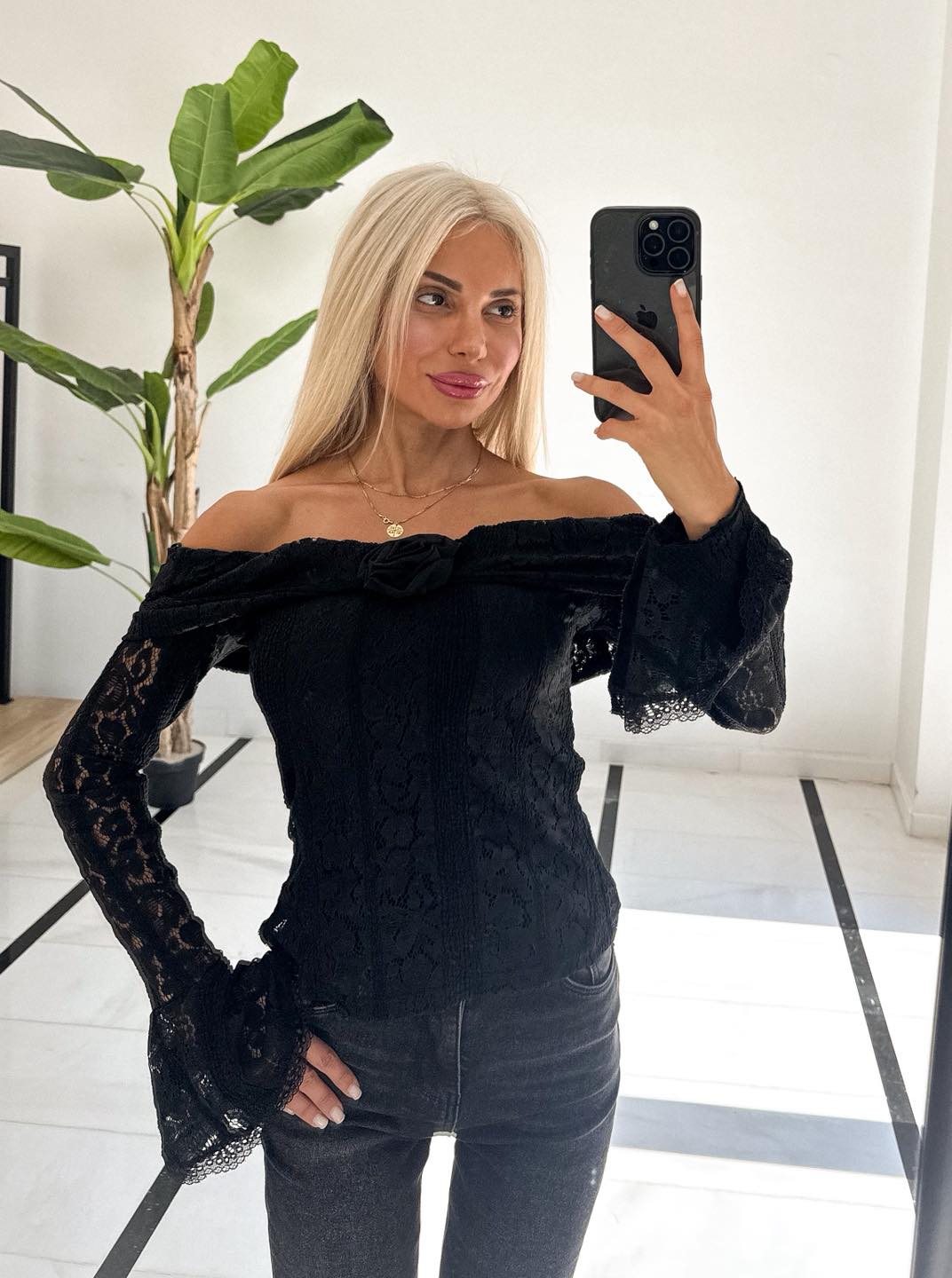 Αμάνικο ριπ πλεκτό μαύρο με στρας και πέρλες