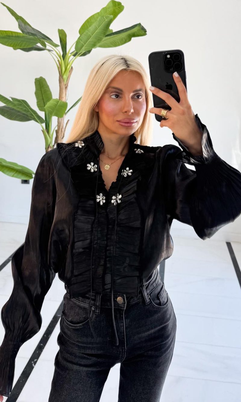 Μπλούζα πουκάμισο μαύρη με στρας
