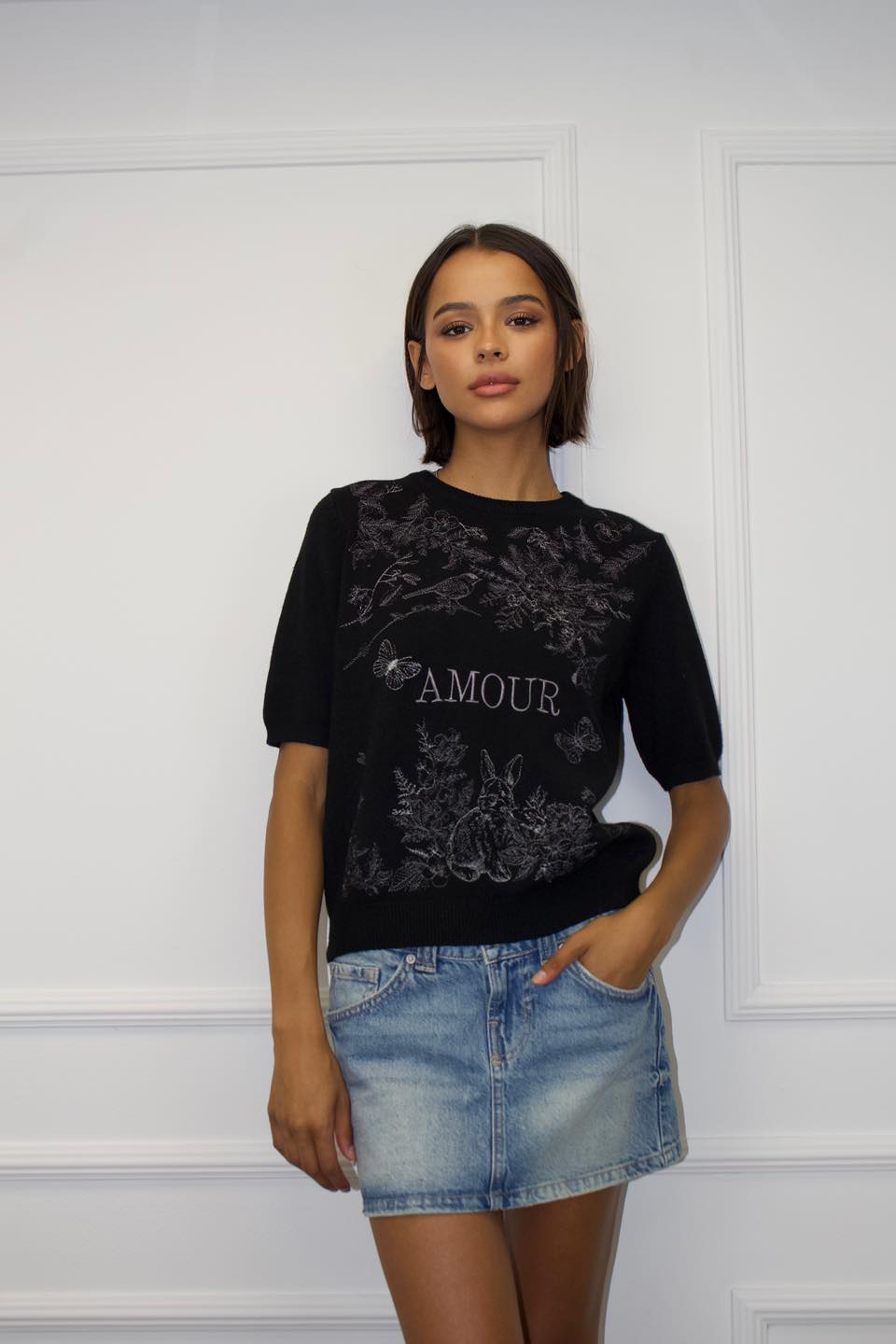 Πλεκτό μπλουζάκι με στρας και φτερά μαραμπου
