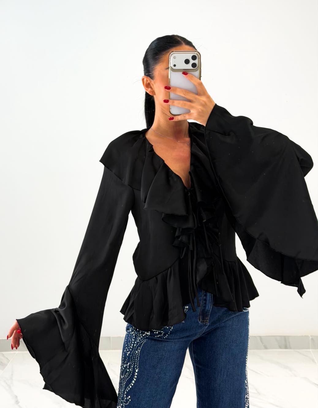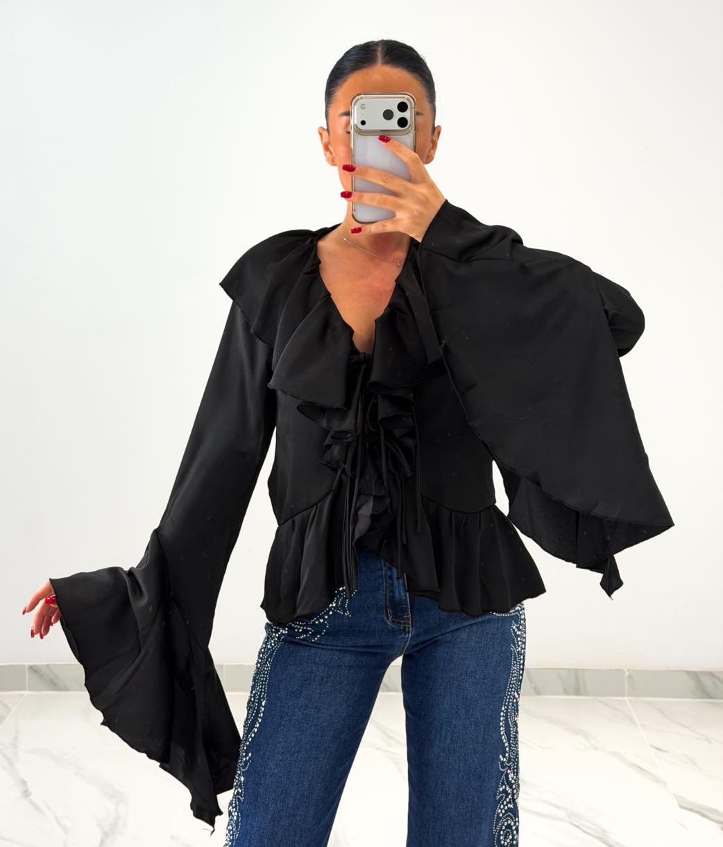 Μπλούζα πουκάμισο μαύρη με στρας