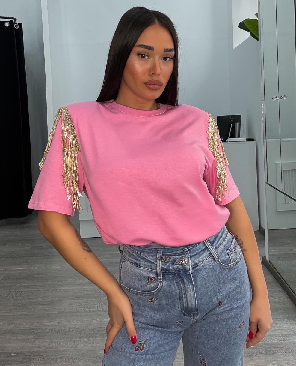 Μπλούζα ροζ με κρεμαστά στρας