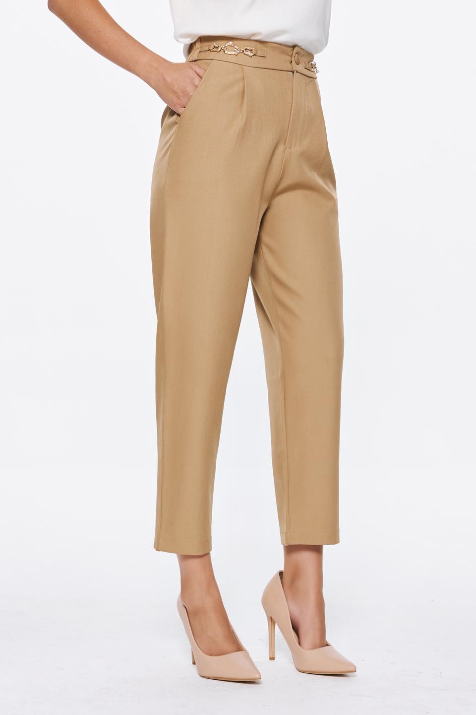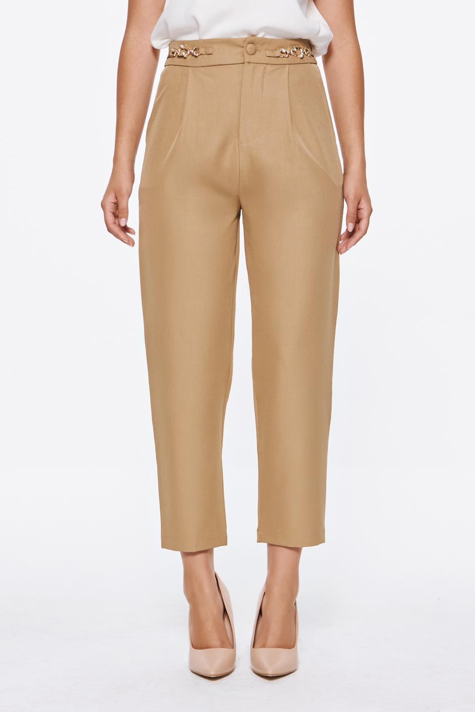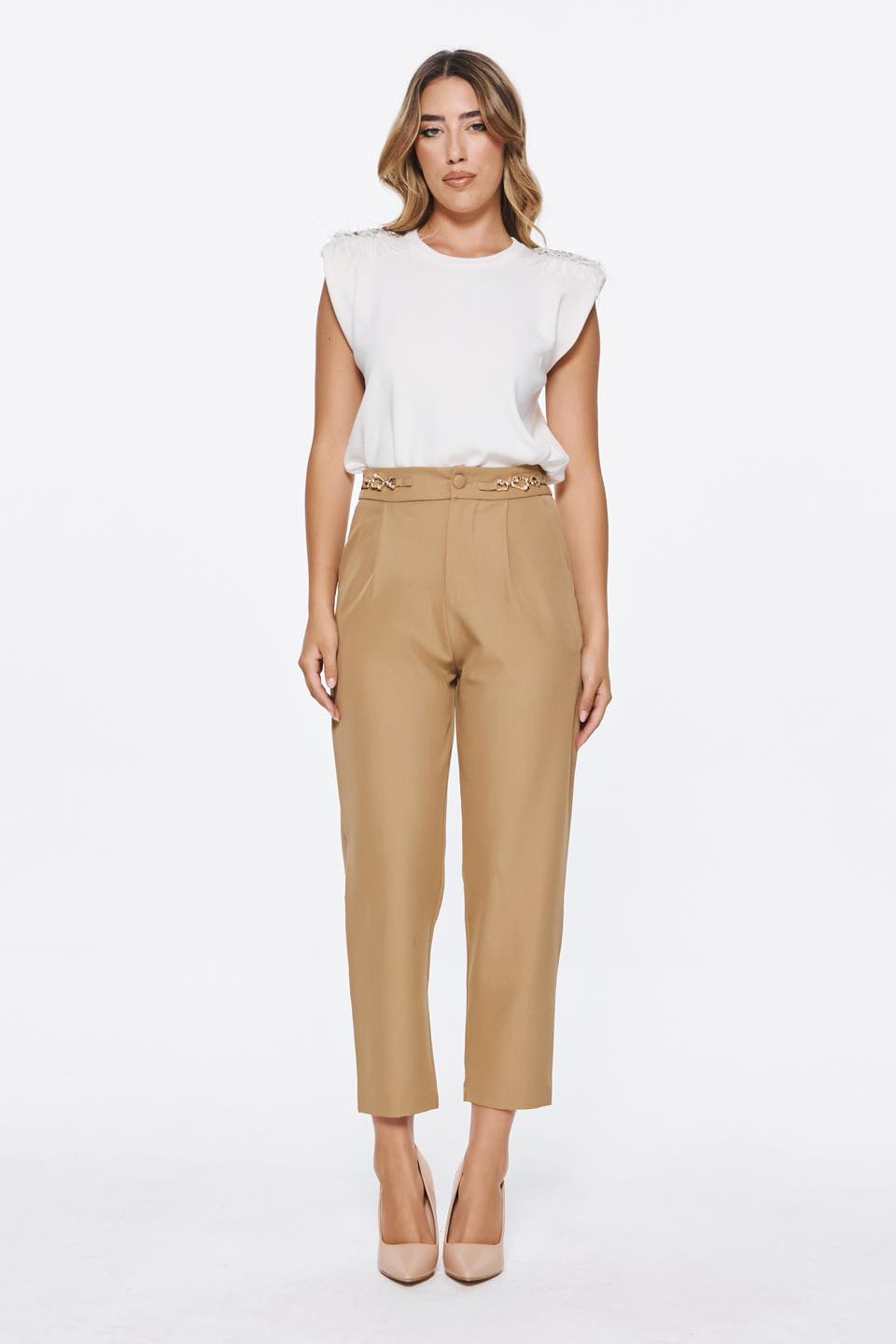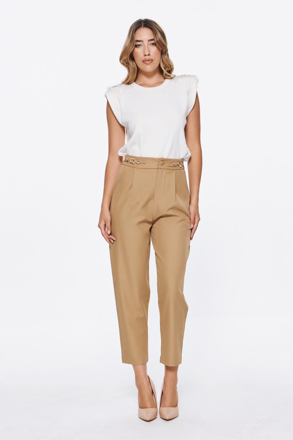 Παντελόνι καμηλό ψηλόμεσο με στρας και χρυσά στοιχεία