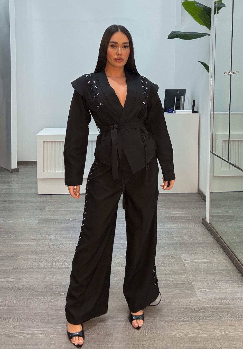 Παντελόνι mochy μαύρο με δεσίματα