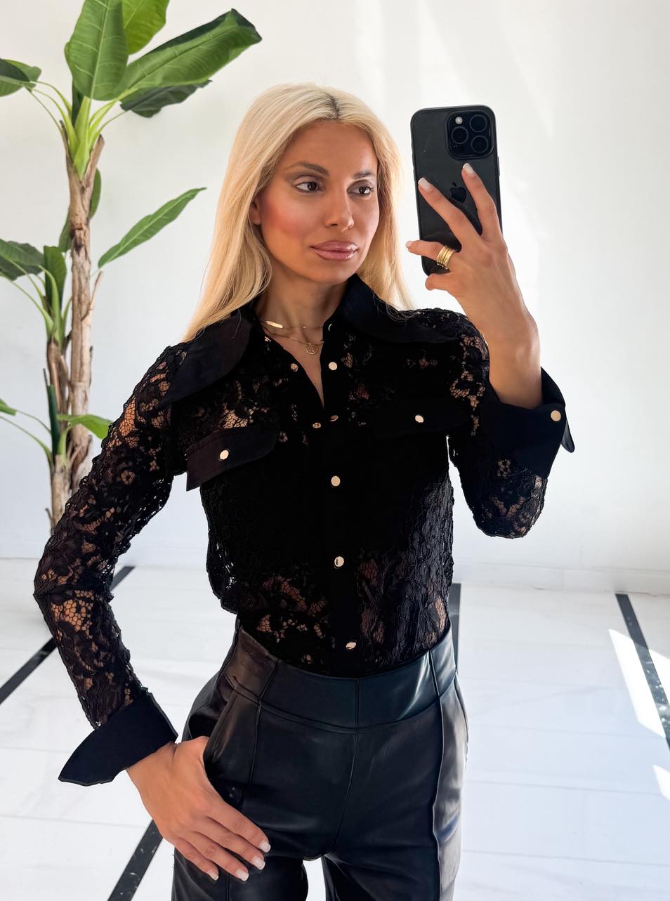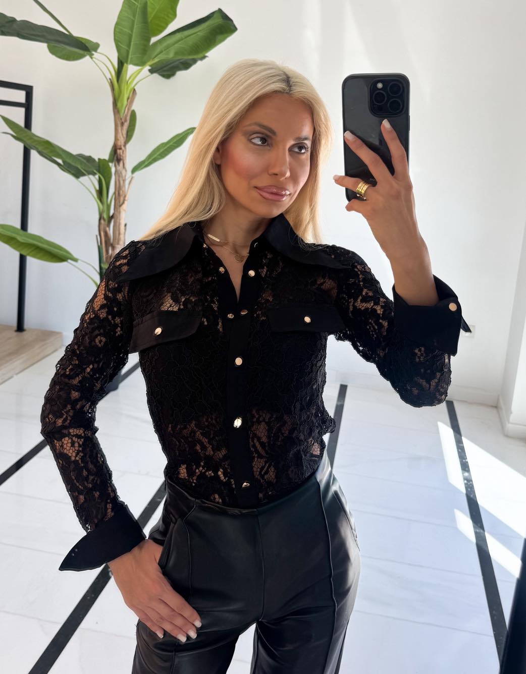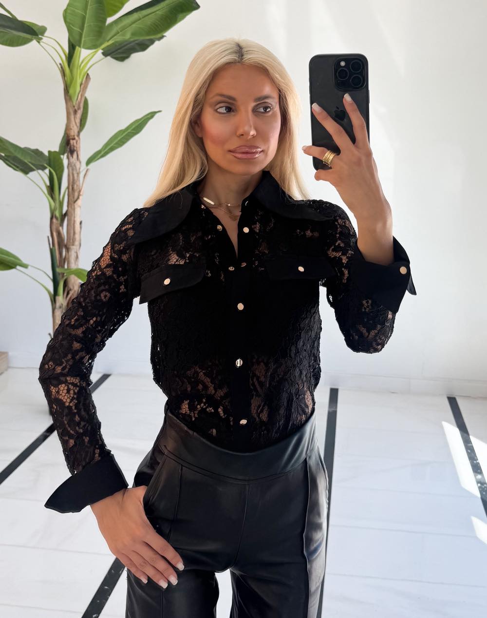 Πουκάμισο μαύρο με δαντέλα κ στρας