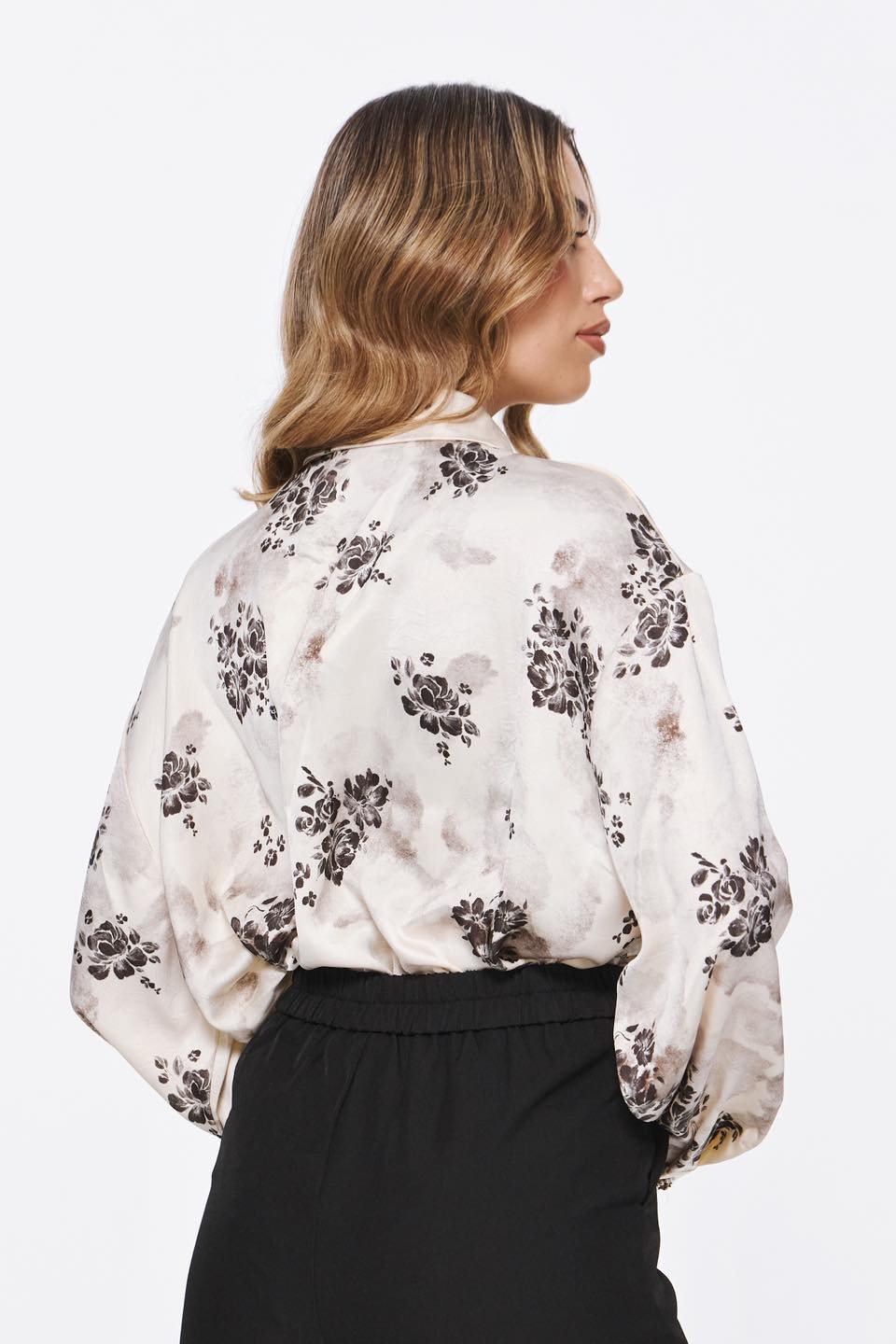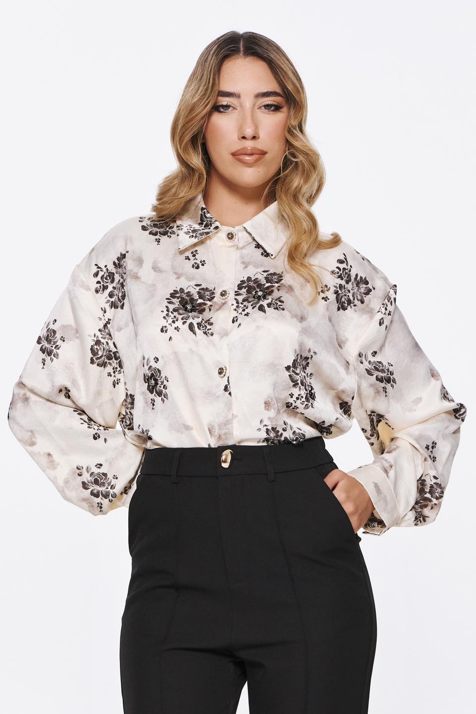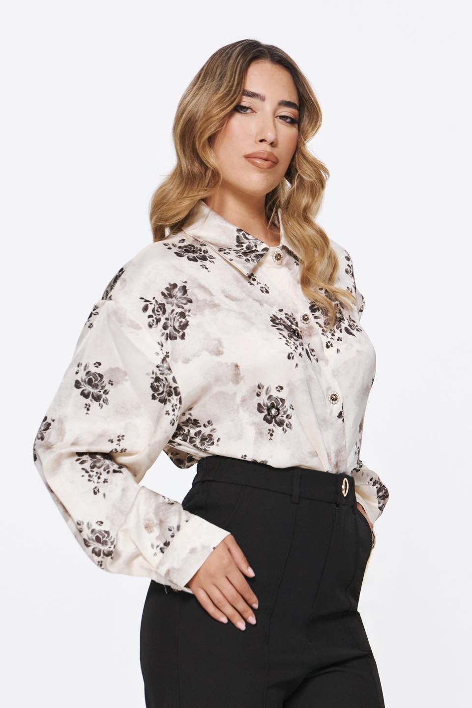 Πουκάμισο εκρού με εξωγκομένα λουλούδια και στρας