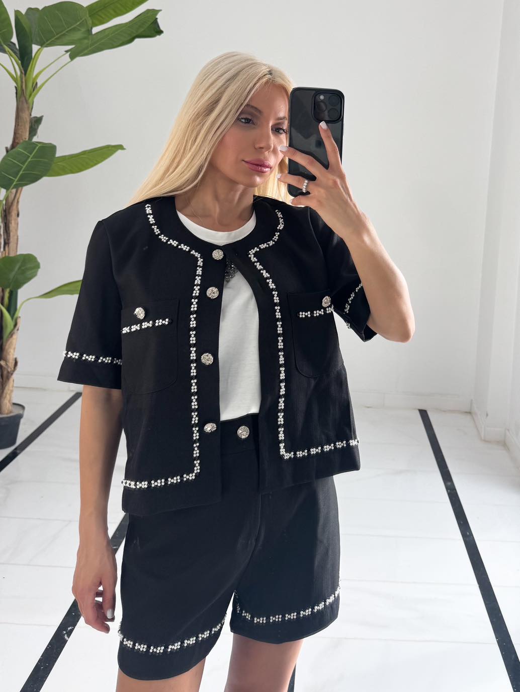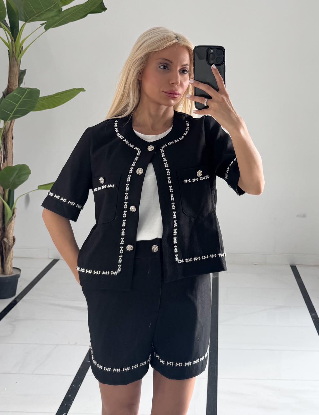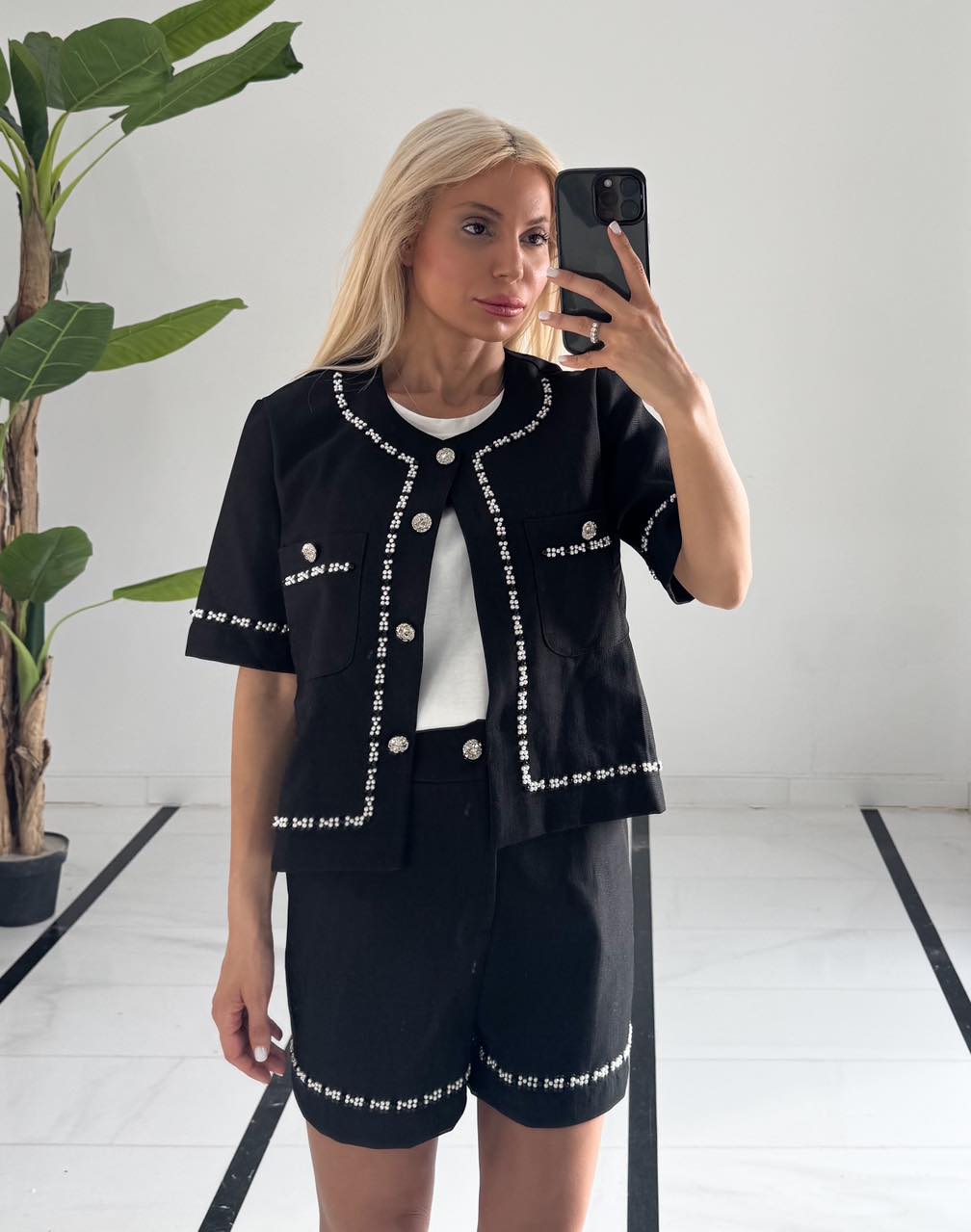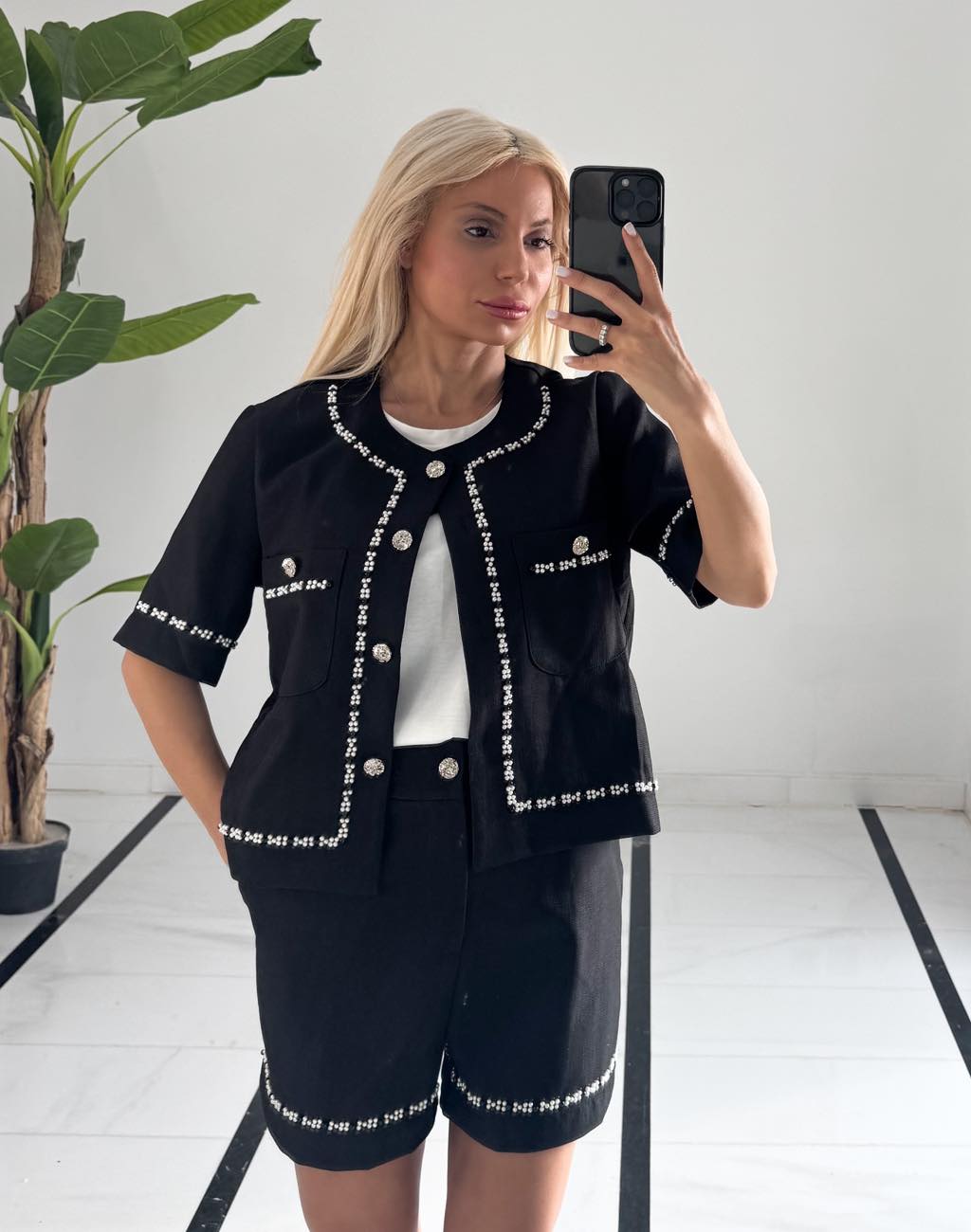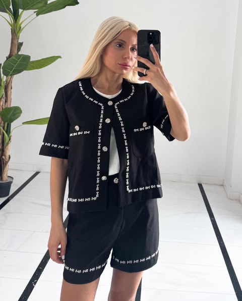 Σετ δύο τεμαχίων, σταθερό σορτσάκι και ζακέτα με πέρλες