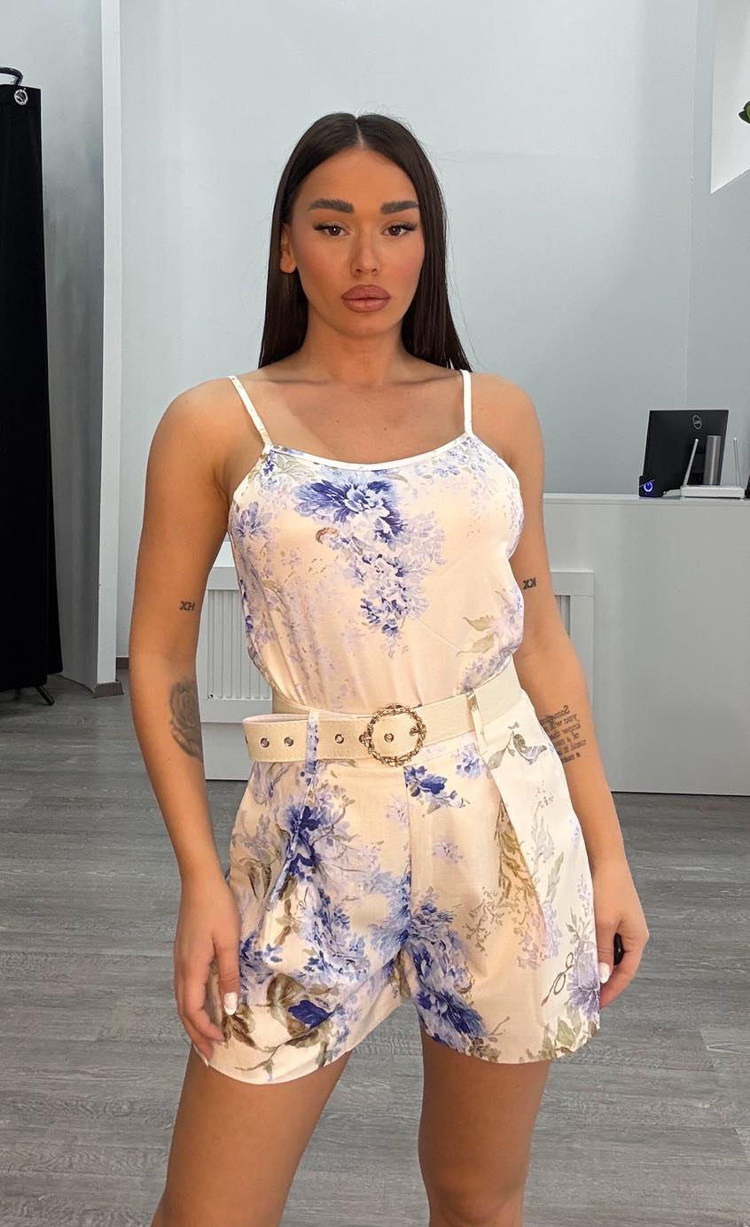 Σετ πουκάμισο με σορτσάκι με πριντ και ζώνη