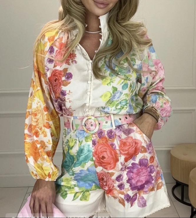 Σετ πουκάμισο με σορτσάκι με πριντ και ζώνη