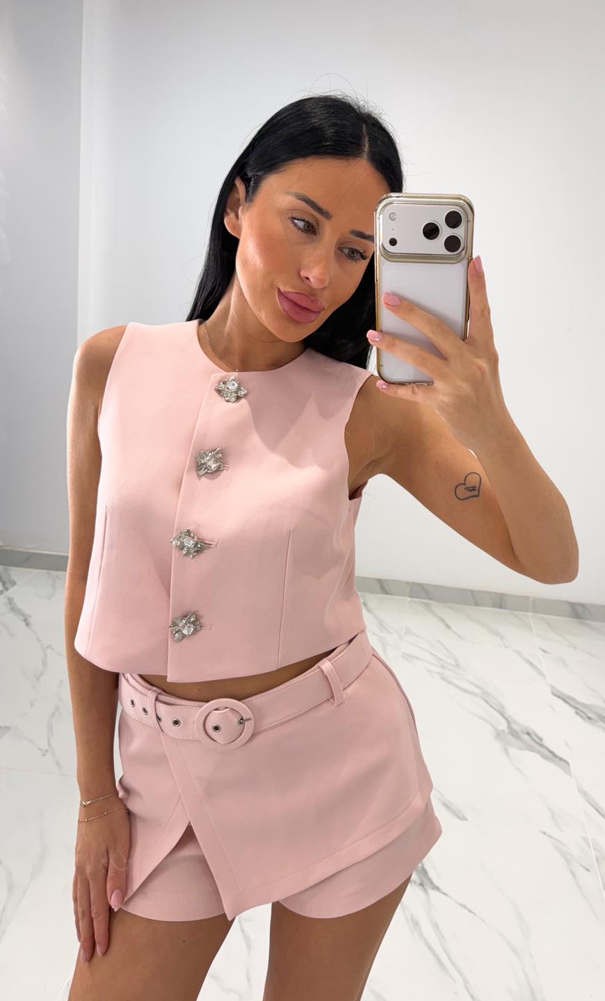 Σετ μαύρο 4 τεμαχίων σορτσάκι με ζώνη τούλινη μπλούζα και μεσοφόρι