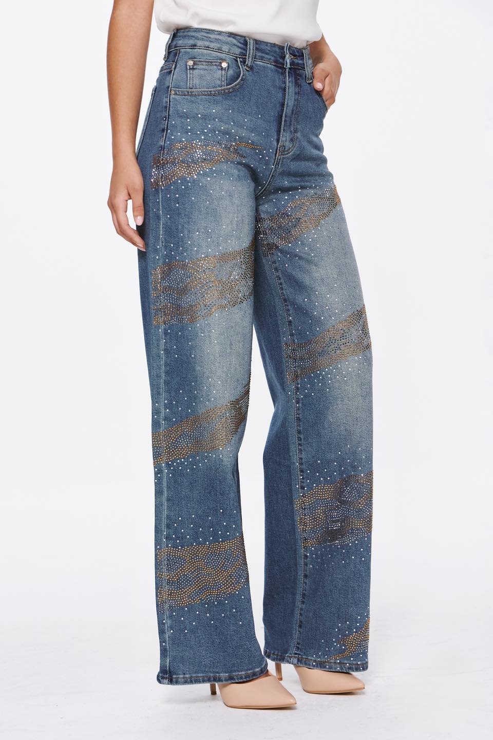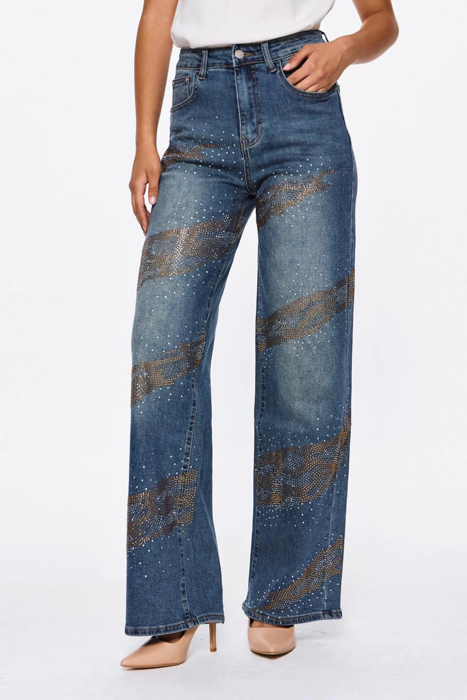 Jean παντελόνι με τριαντάφυλλα και στρας