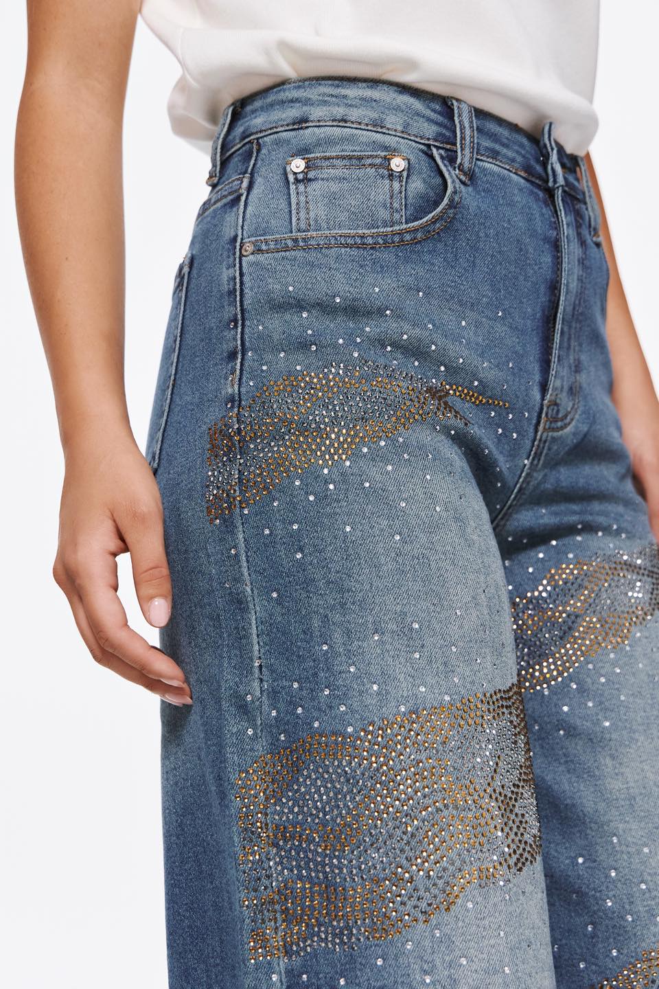 Παντελόνι jeans με κοψίματα εμπρός και χρυσό λουλούδι