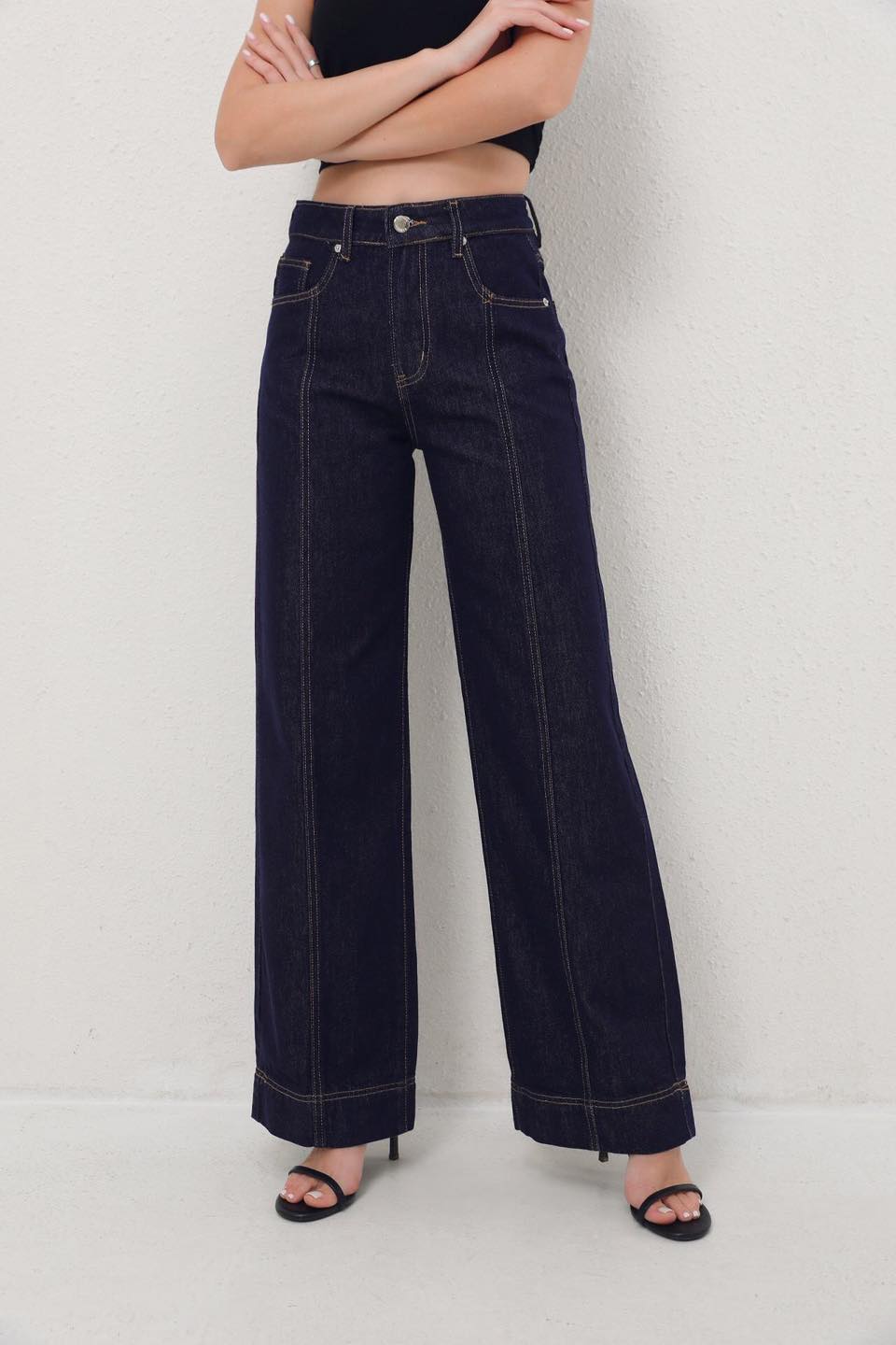 Τζιν ψηλόμεσο παντελόνι με κάθετη ραφή