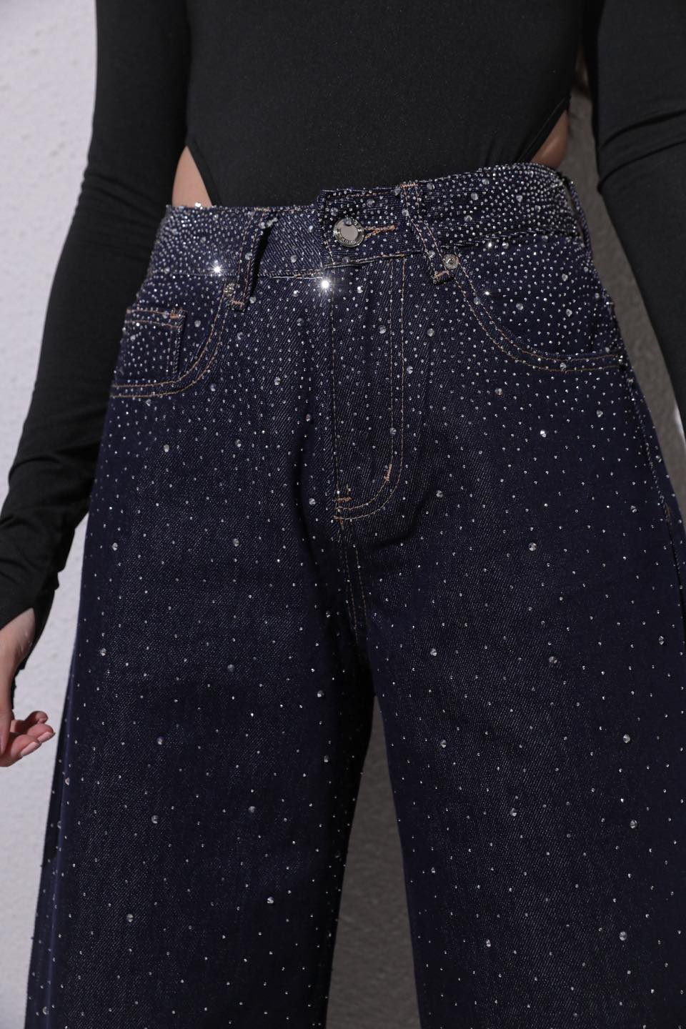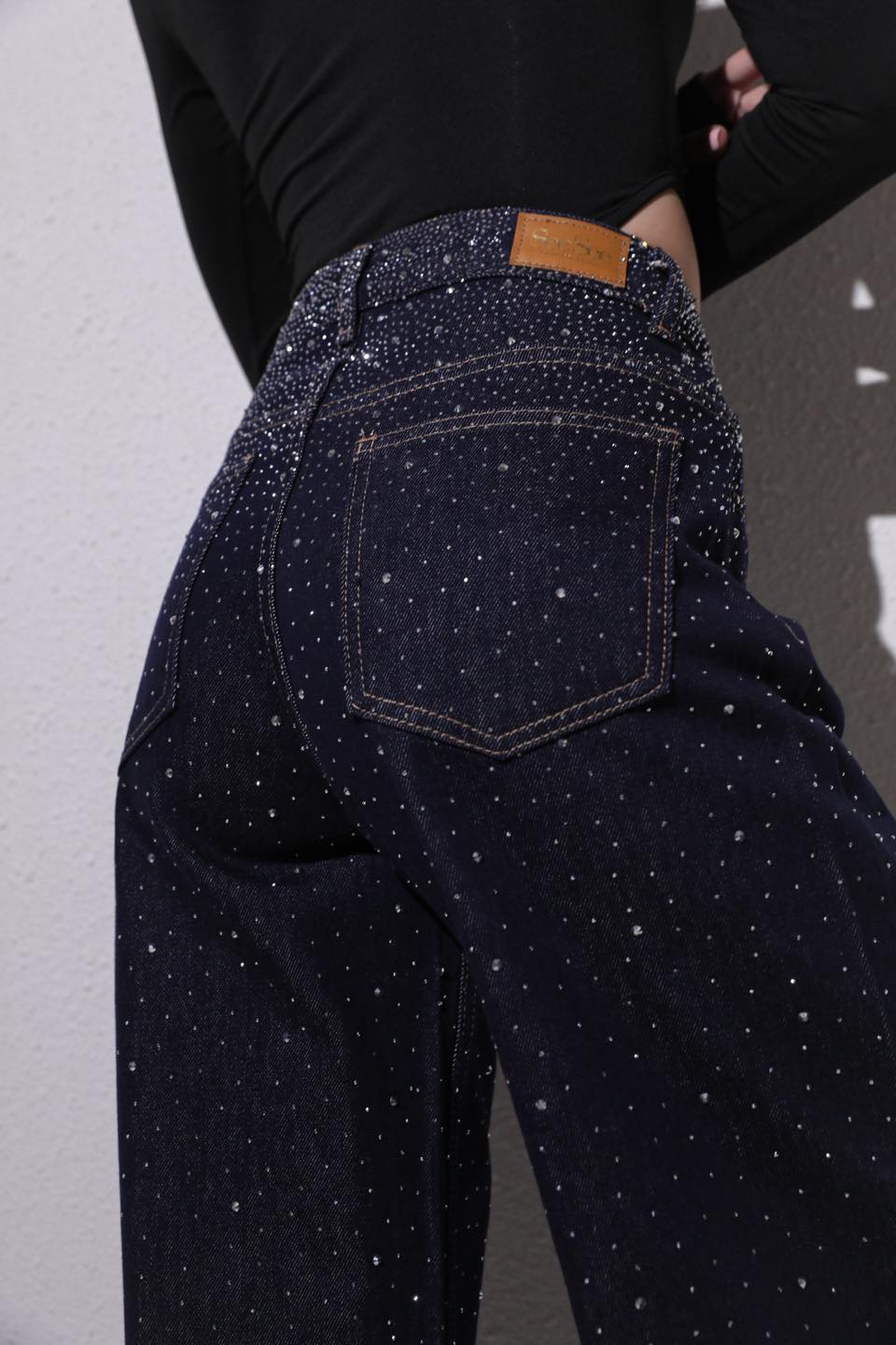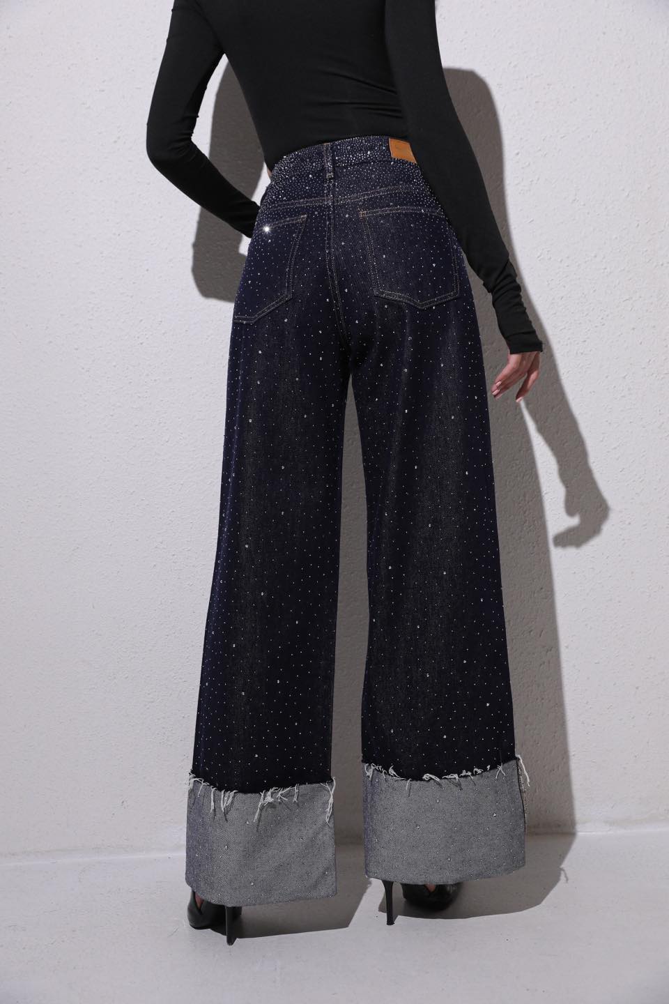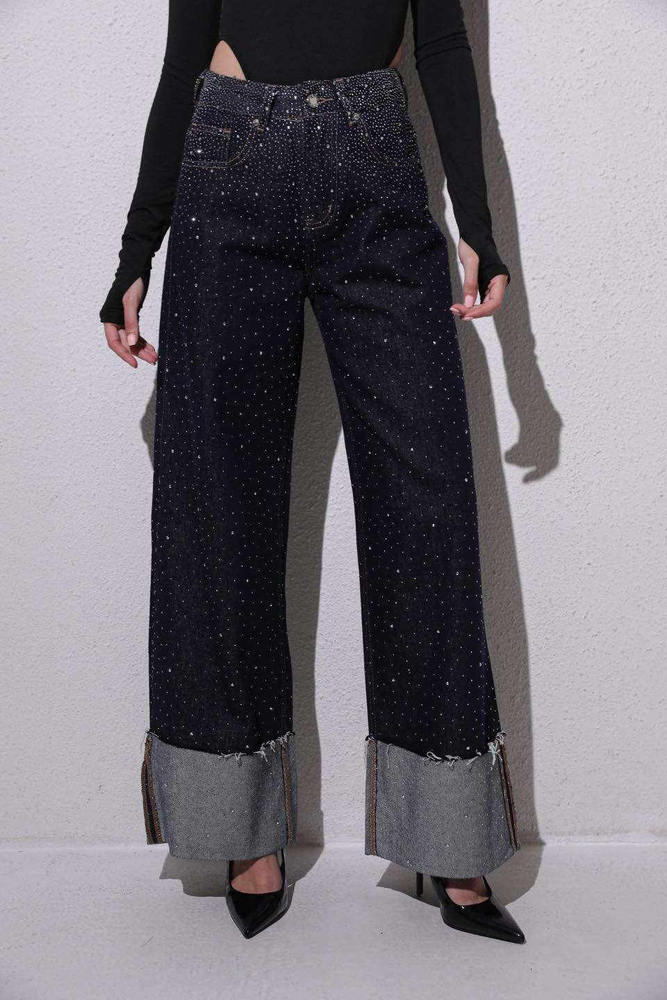 Τζιν ψηλόμεσο παντελόνι με στρας και ανάποδο γύρισμα