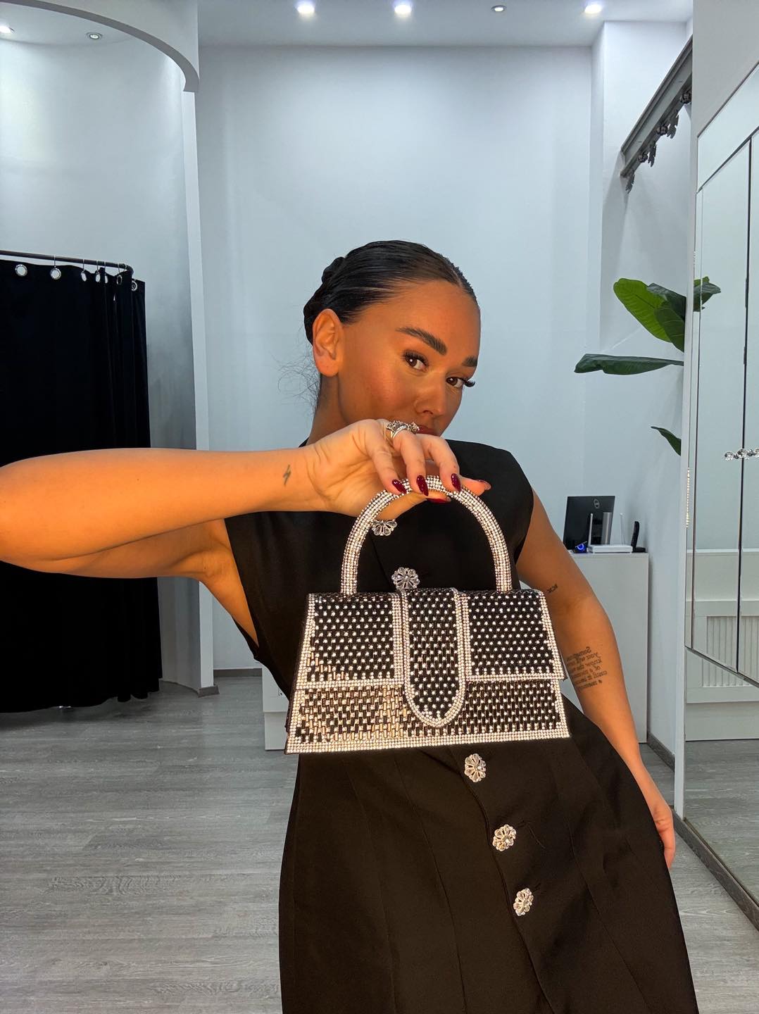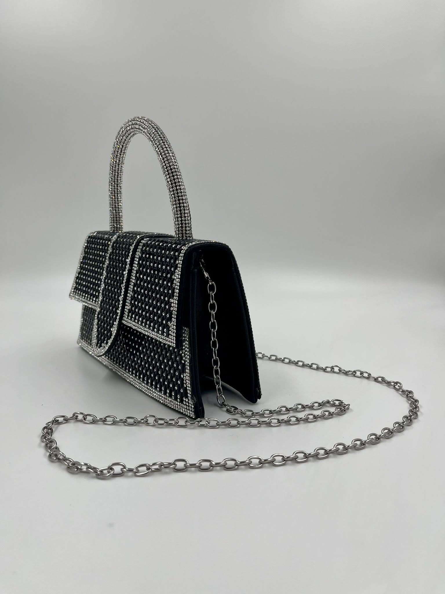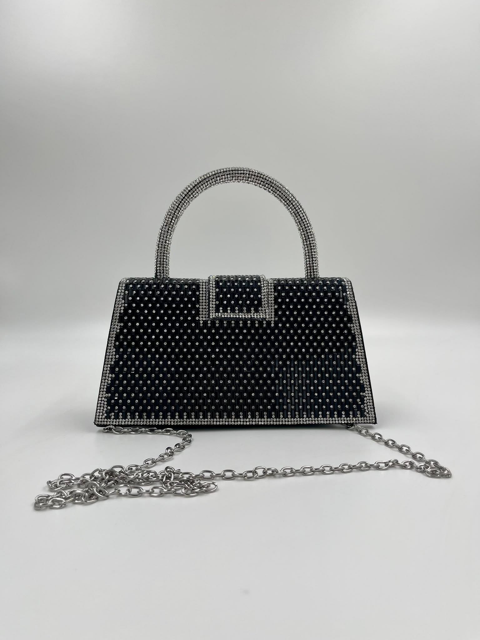 Ζώνη αλυσίδα ασημί με λευκά μεγάλα στρας