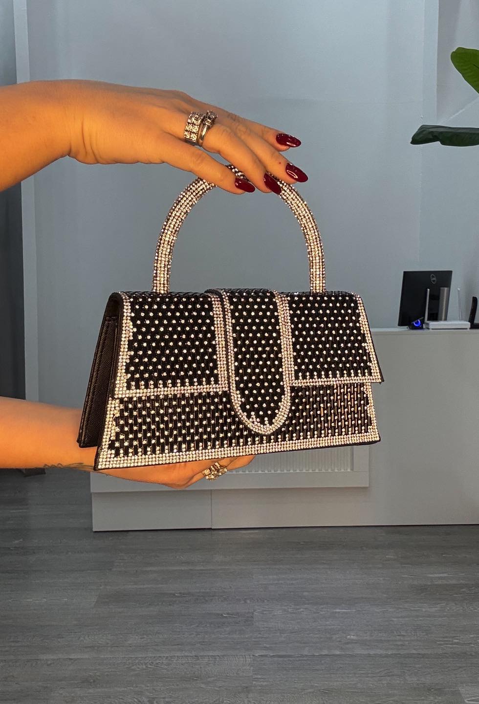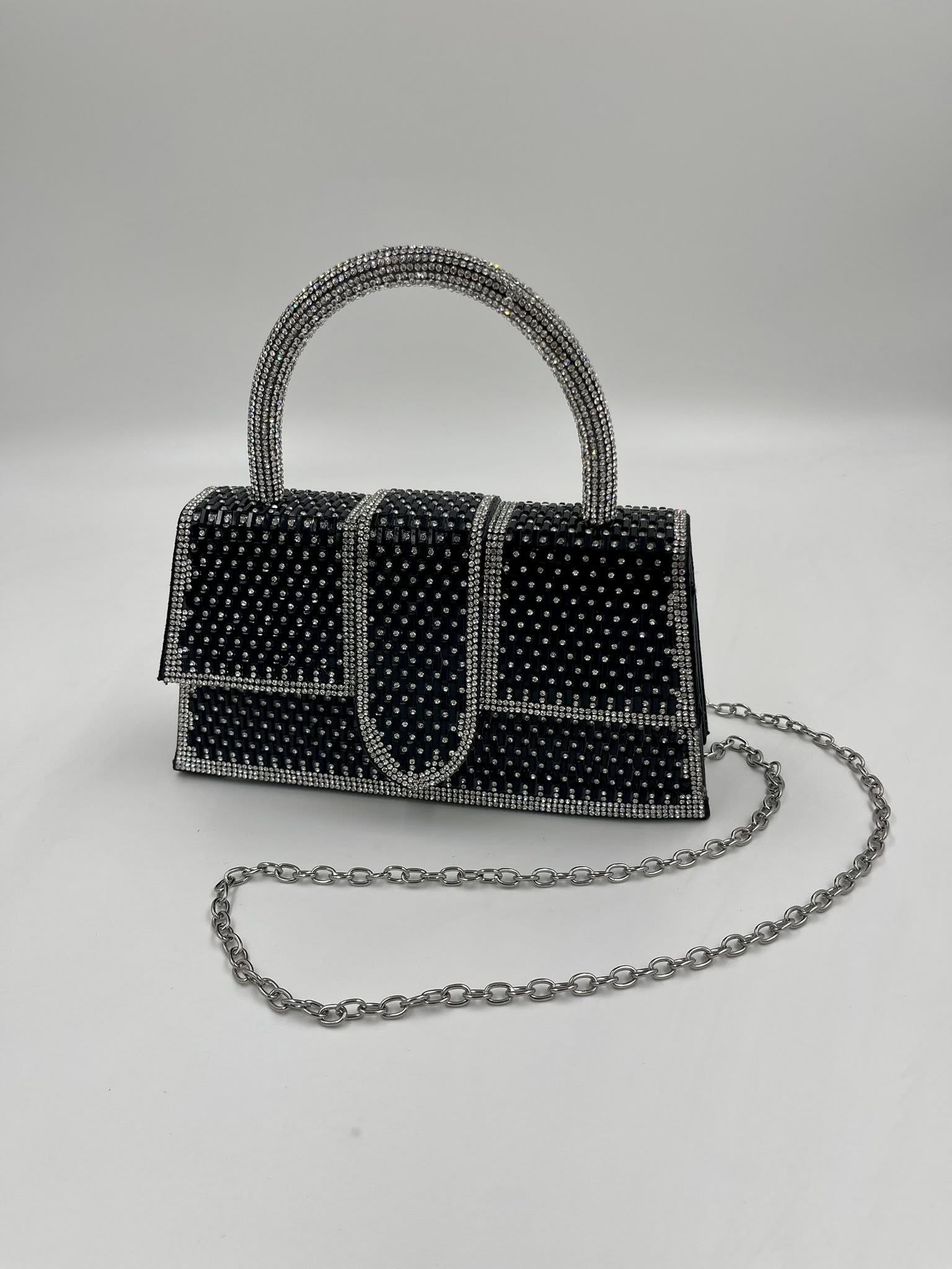 Ζώνη αλυσίδα χρυσή με μαύρη πέτρα με ασημί στρας