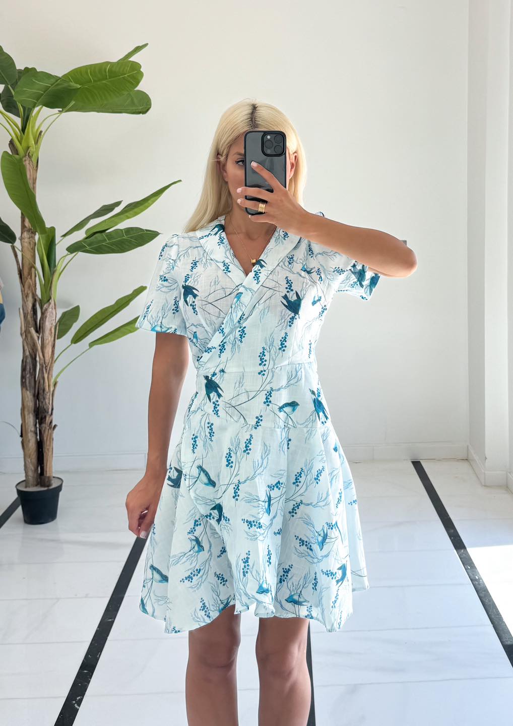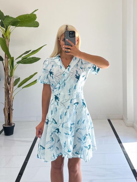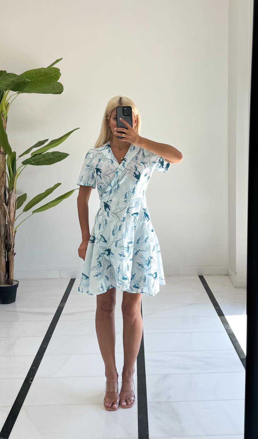 Φόρεμα εμπριμέ σε χρώμα σιέλ