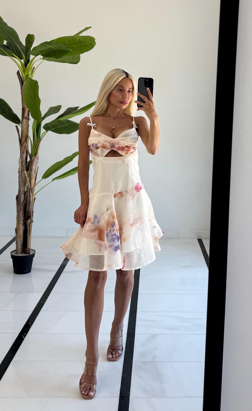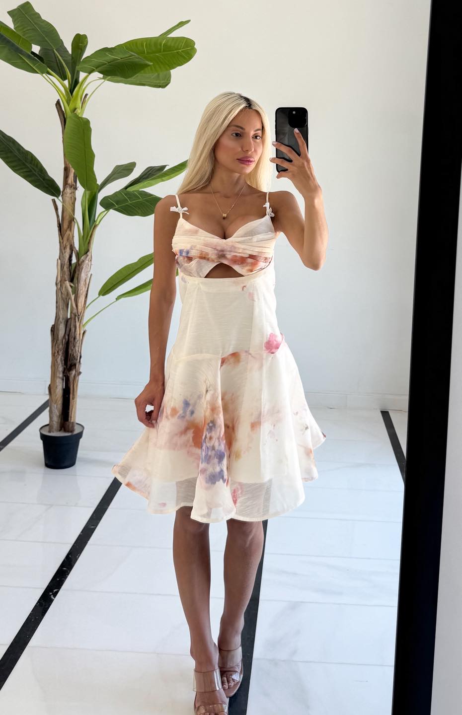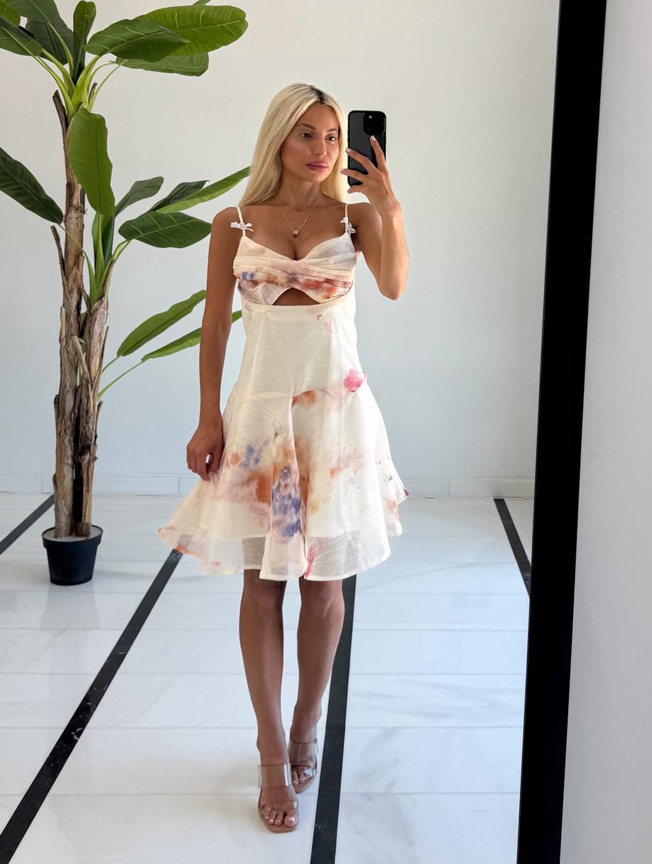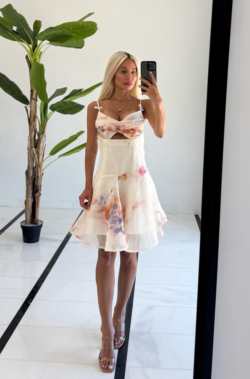 Φόρεμα λευκό-εκρού με πριντ