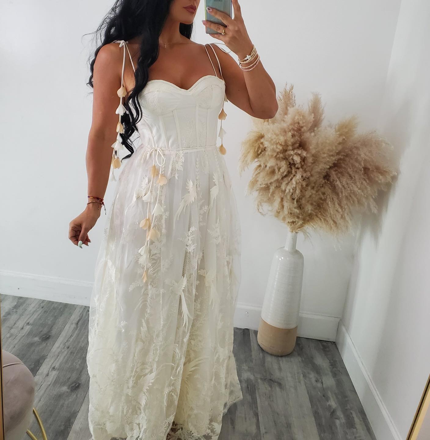Φόρεμα λευκό με κεντημένη δαντέλα