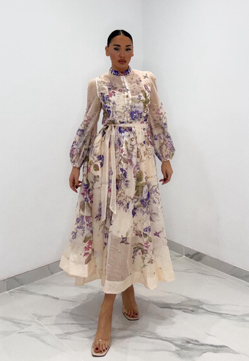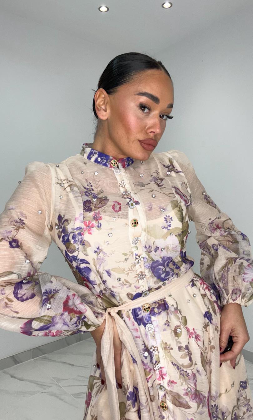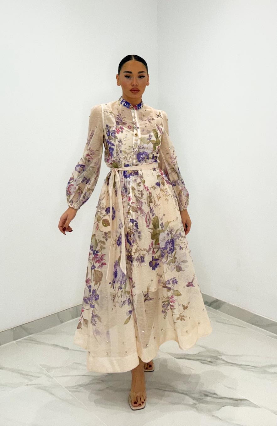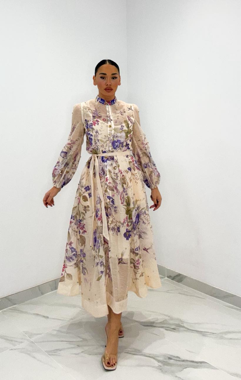 Φόρεμα με στρας στα κουμπιά αλλά και σε όλο το μήκος του φορέματος , ζωνάκι και διαθέτει μεσοφορι ,