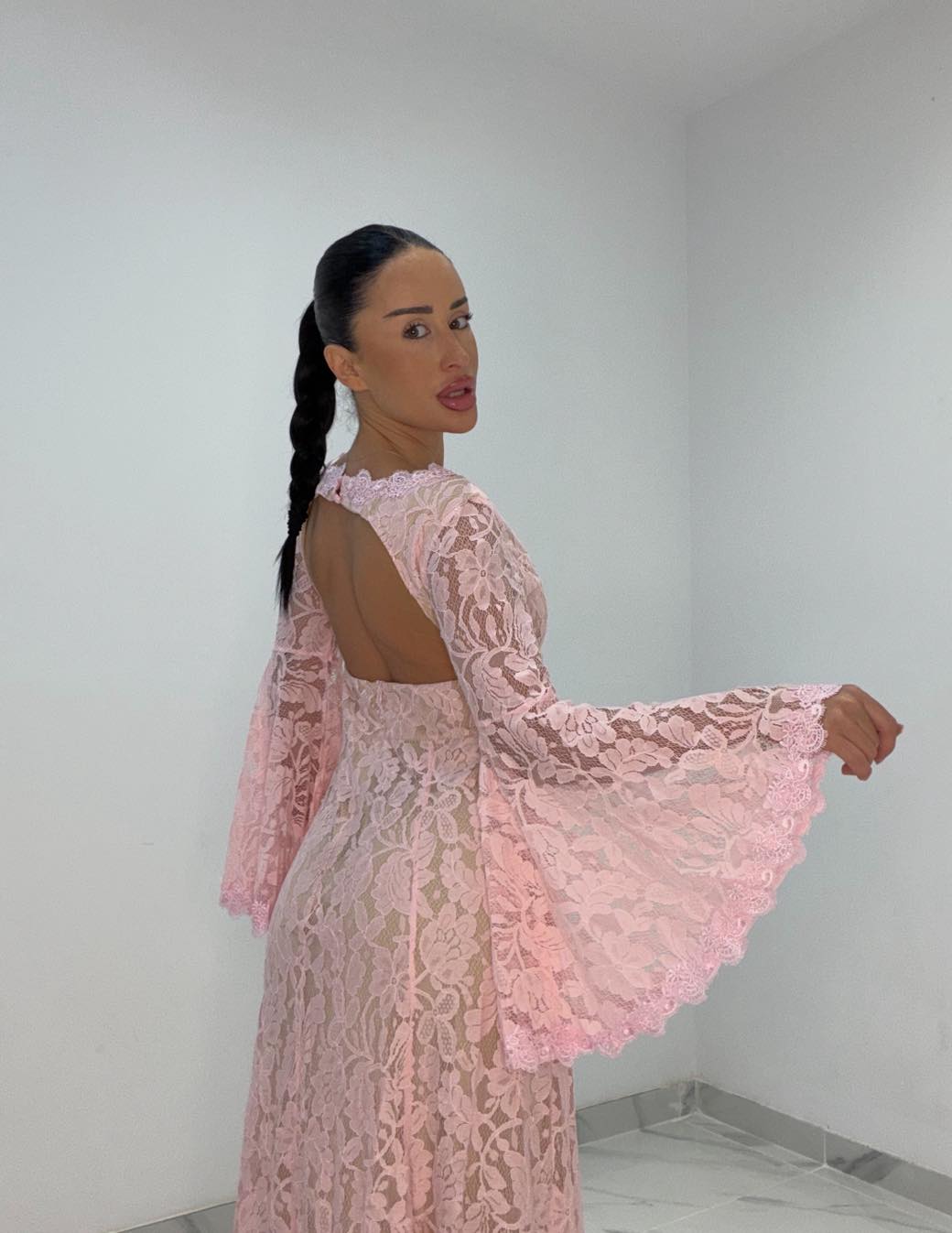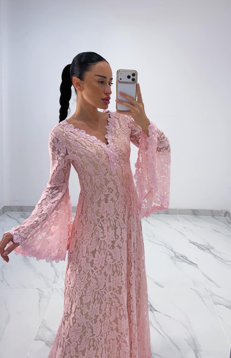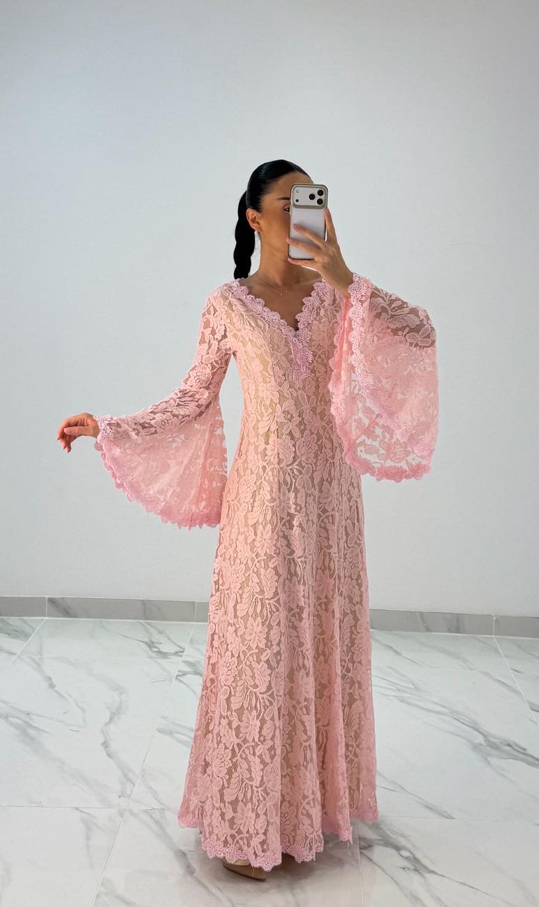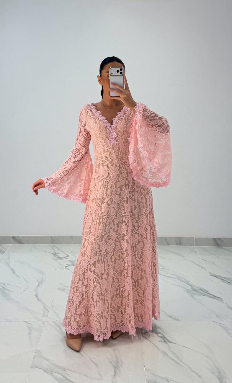 Φόρεμα μάξι κίτρινο με δαντέλα