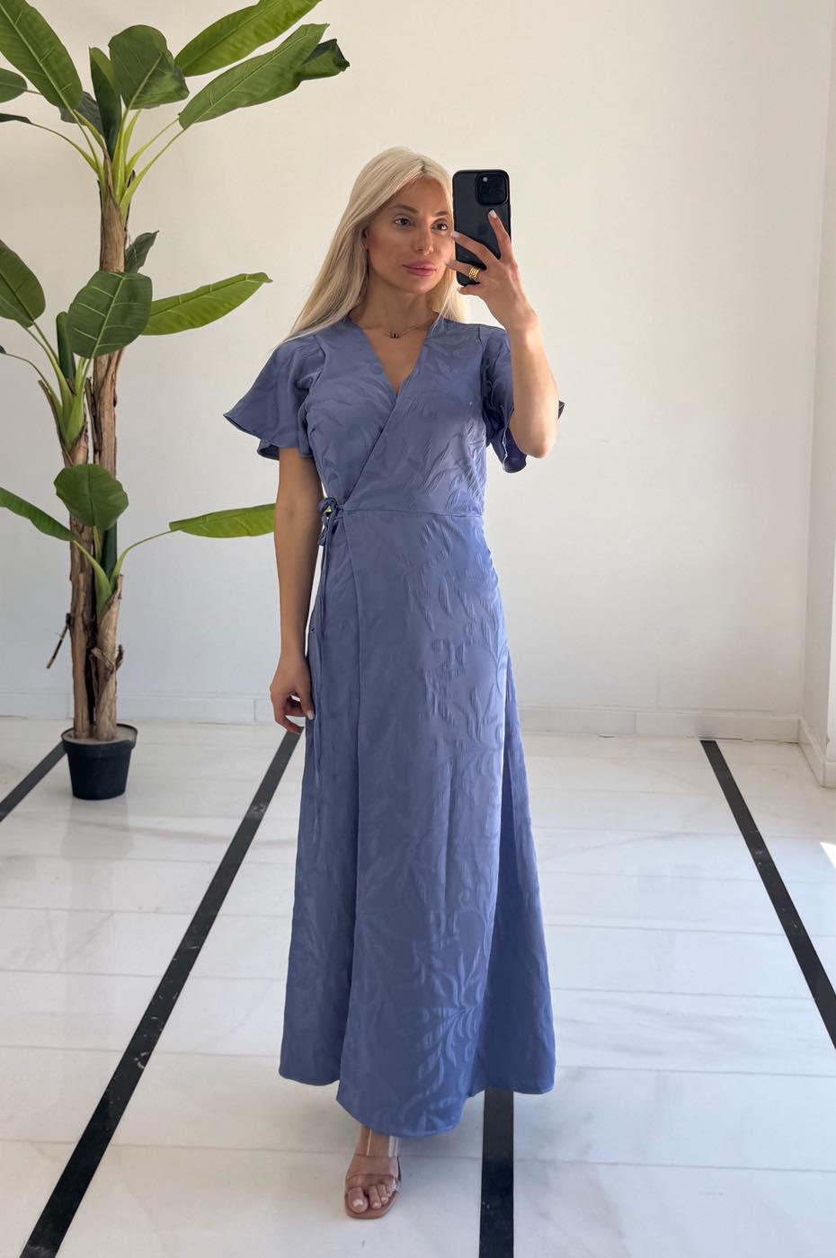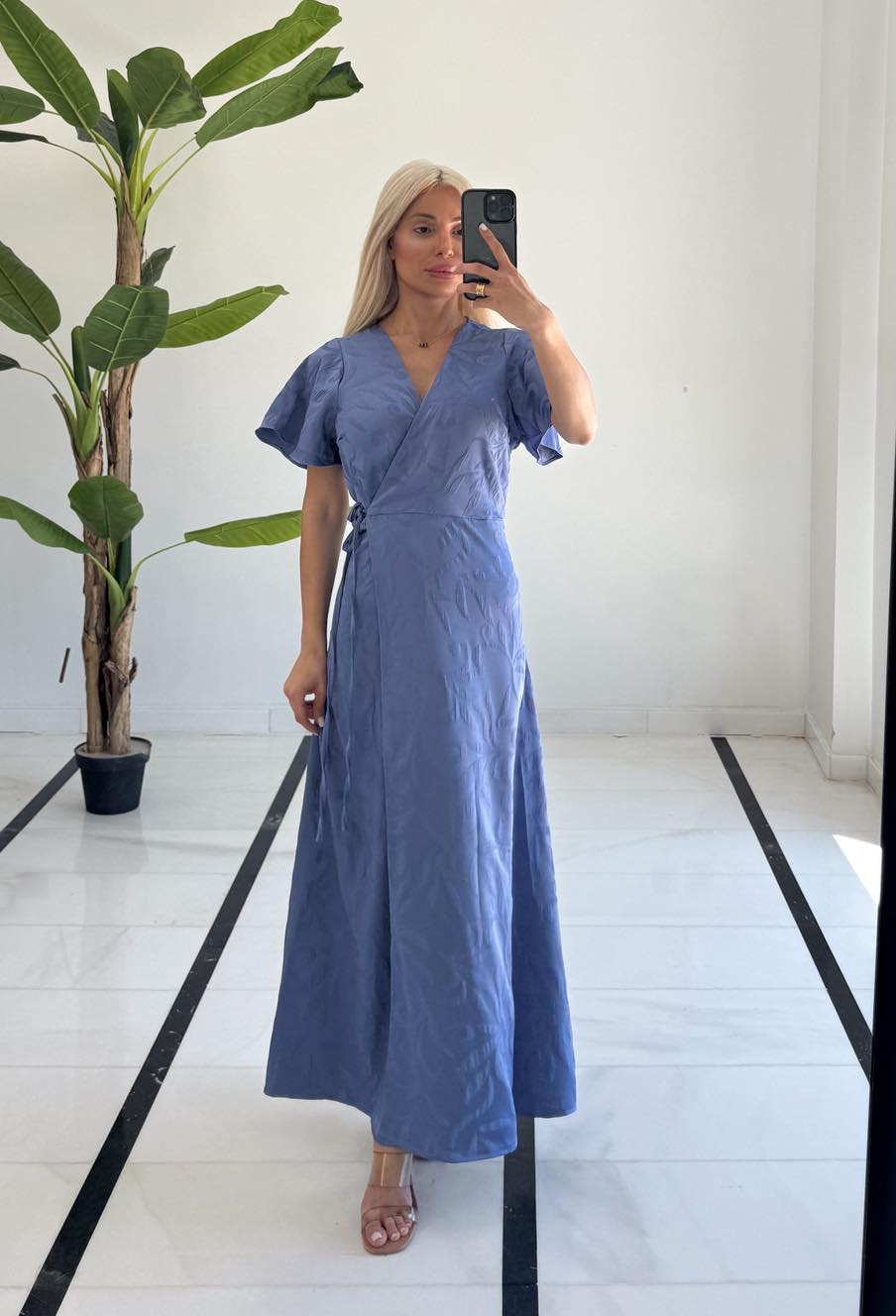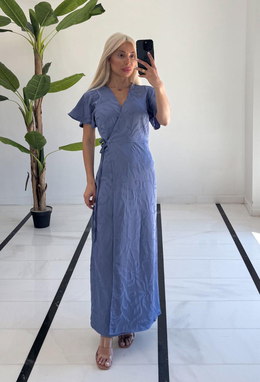 Φόρεμα μακρύ σατέν κρουαζέ με ανάγλυφα λουλούδια